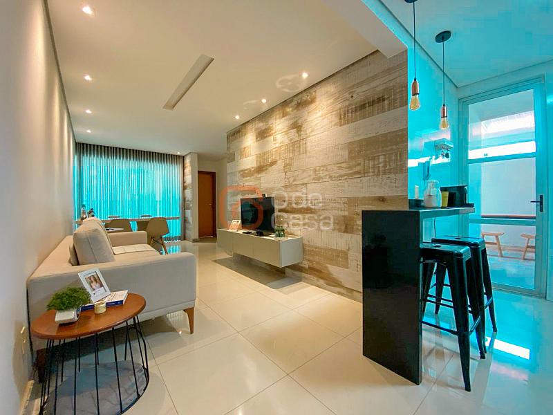 Ampla sala para 2 ambientes com varanda, coizinha americana com armários planejados, 2 quartos, sendo 1 suíte.