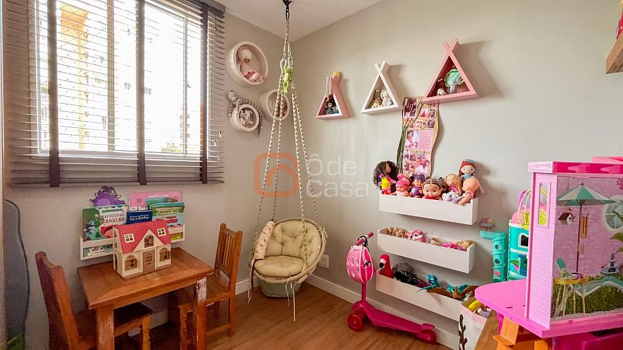 Prédio com portaria 24h, elevador, câmeras e lazer contendo piscina, churrasqueira, salão de festa e playground.