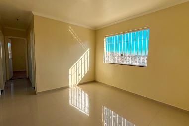 Sala ampla com varanda, Cozinha com armários planejados, área de serviço independente, banheiro social, 2 quartos, sendo 1 suíte.