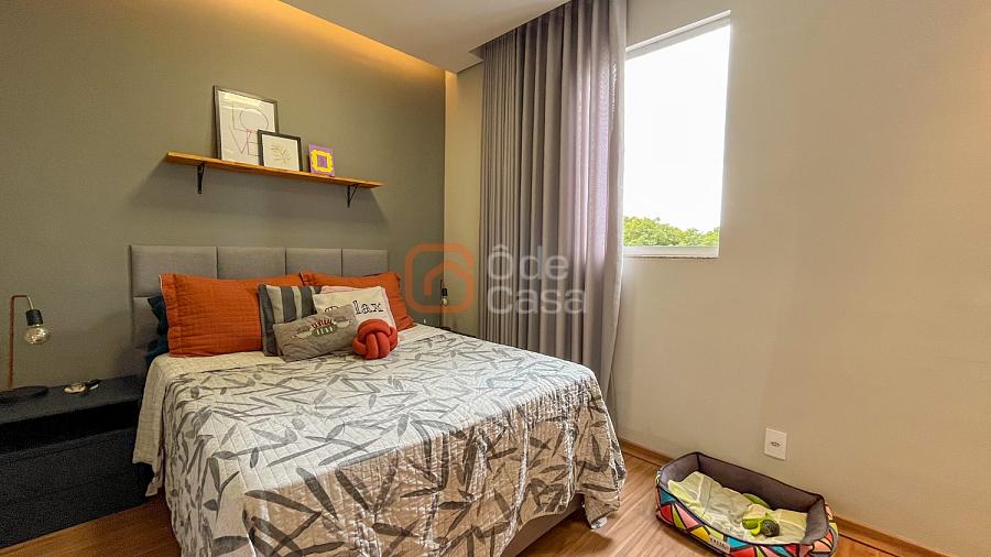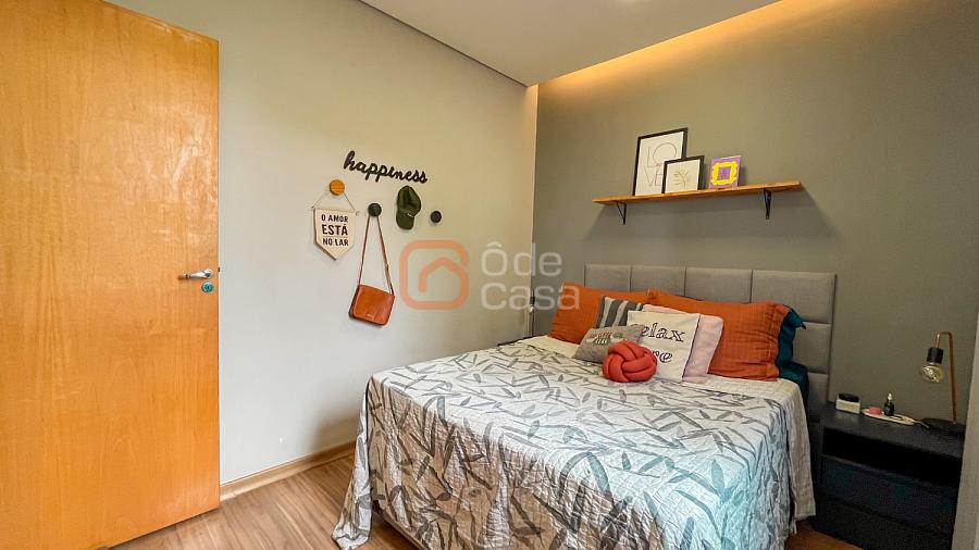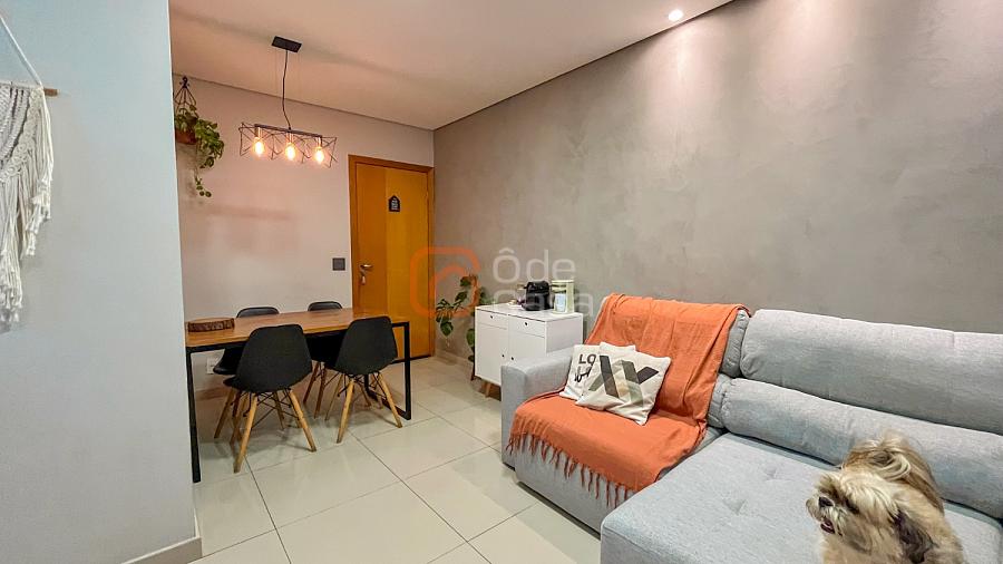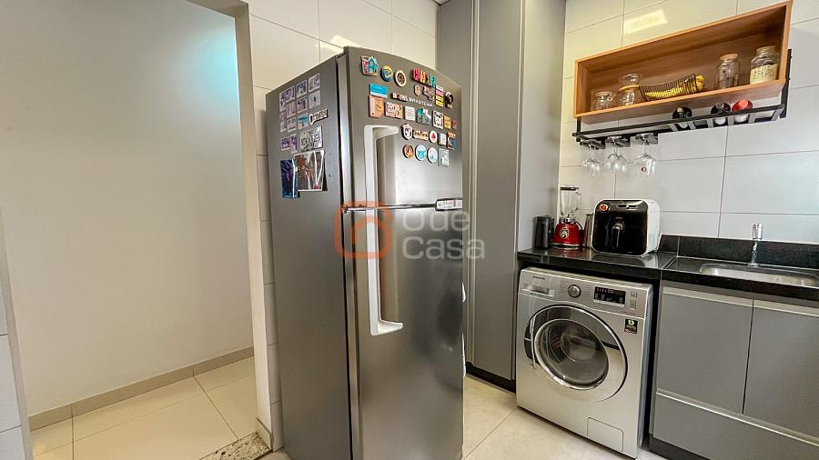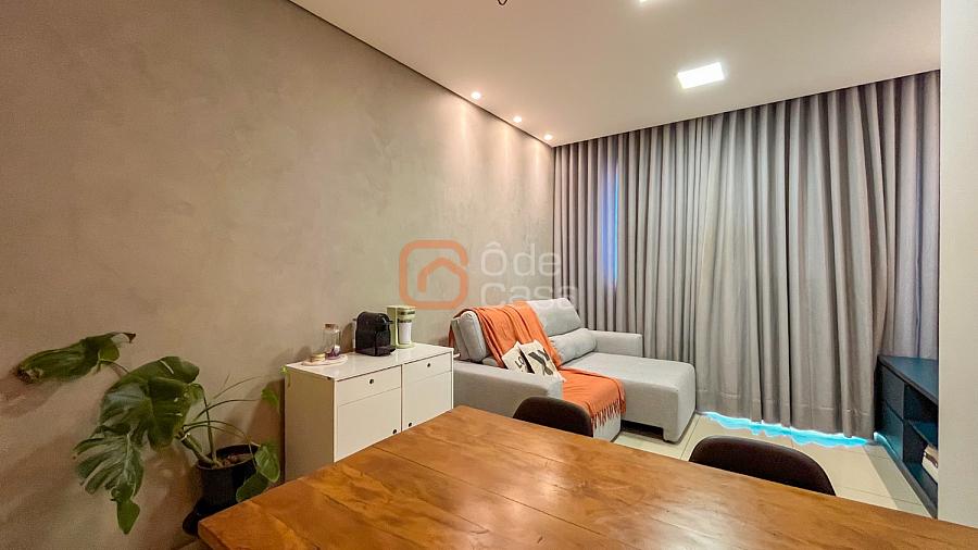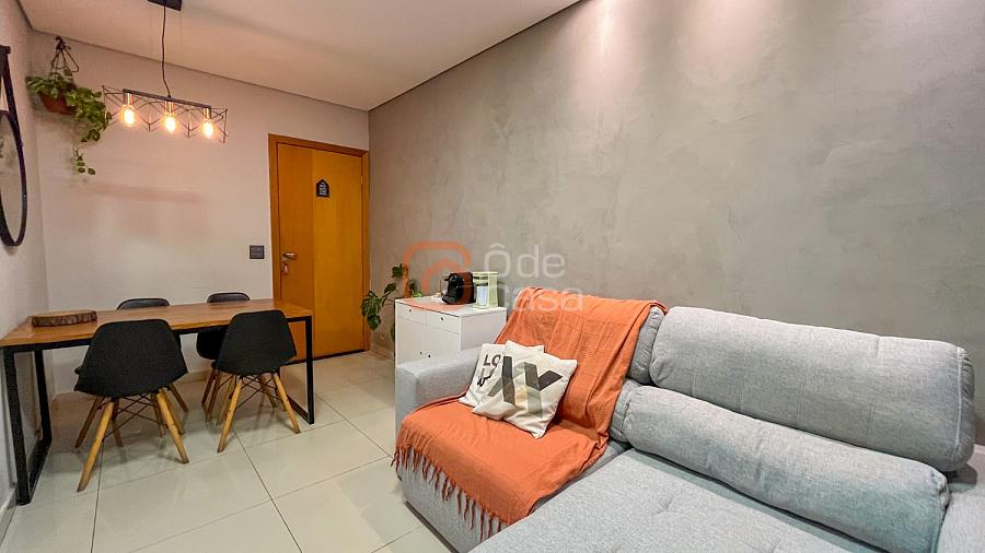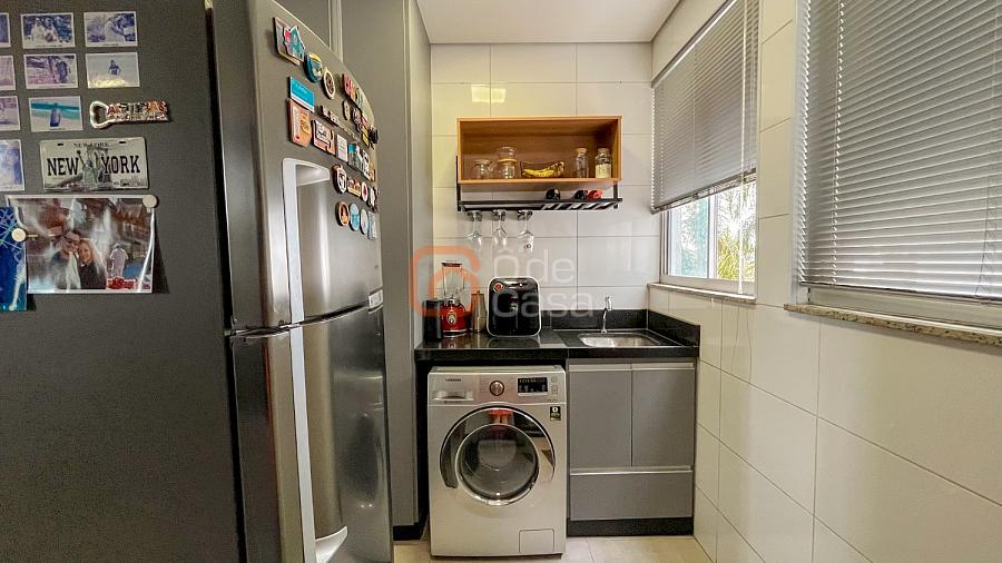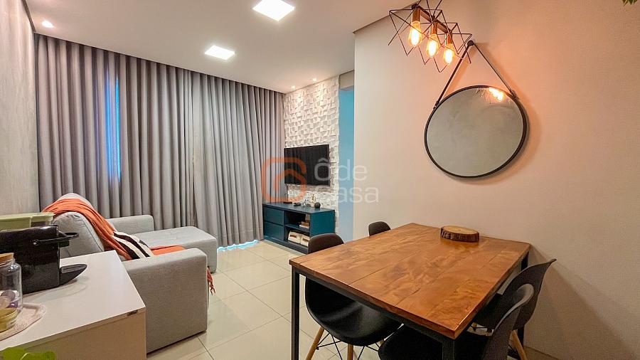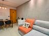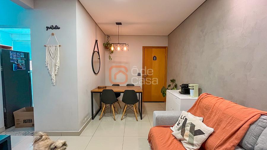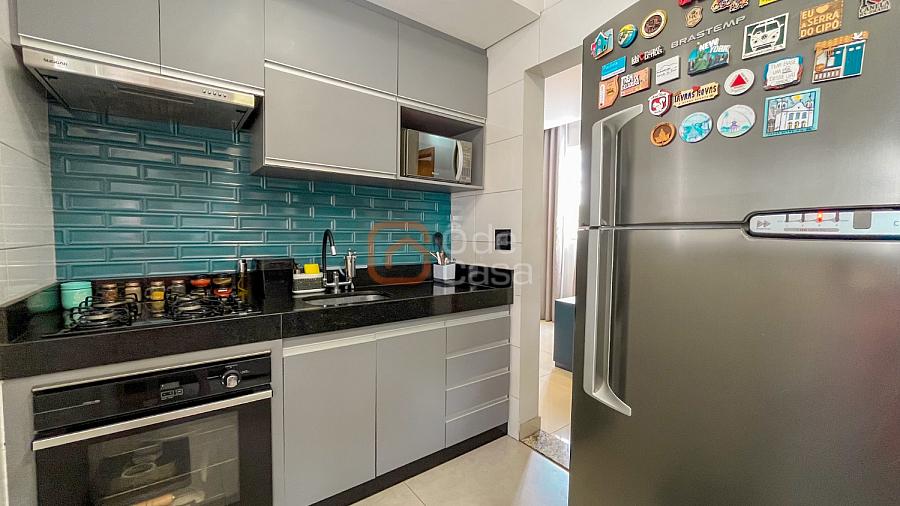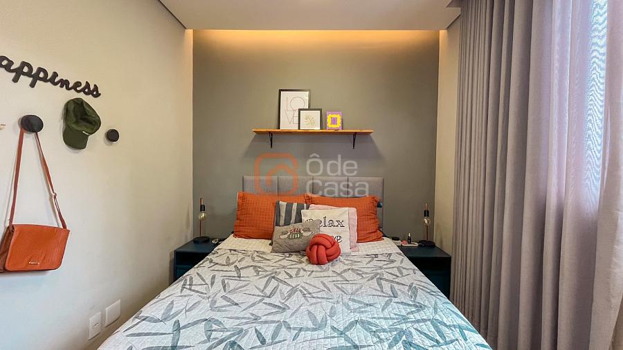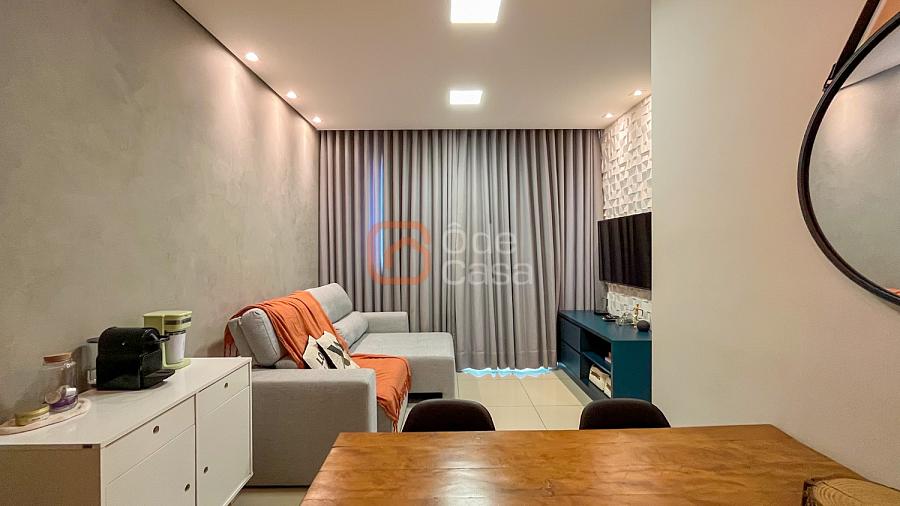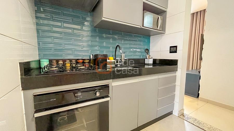 Sala para dois ambientes, cozinha com armários, cooktop, coifa e forno, área de serviço conjugada com cozinha com armários planejados. Parte íntima com 2 quartos, sendo 1 suíte e outro com armário planejado e banheiro social.