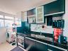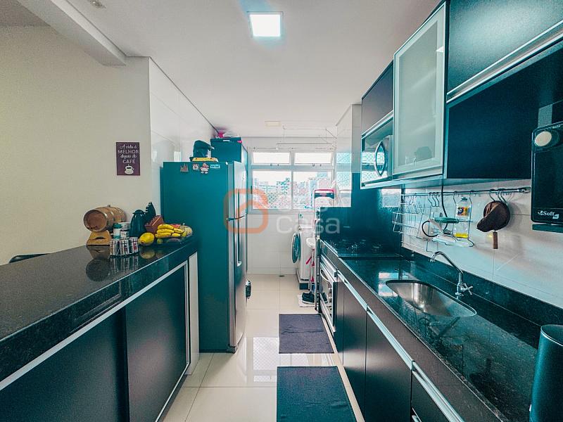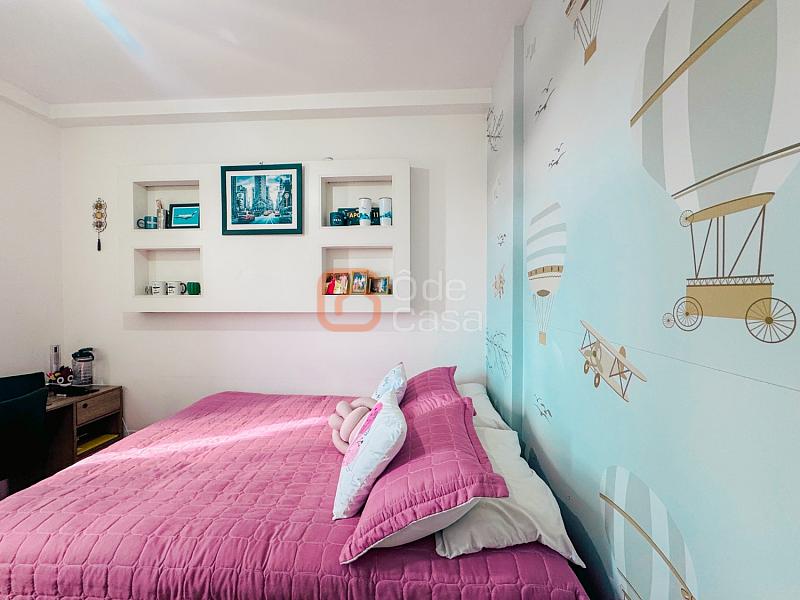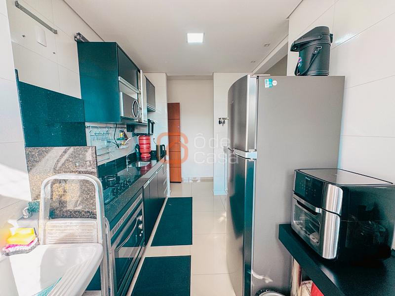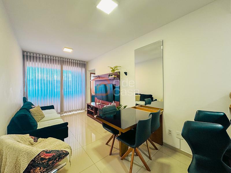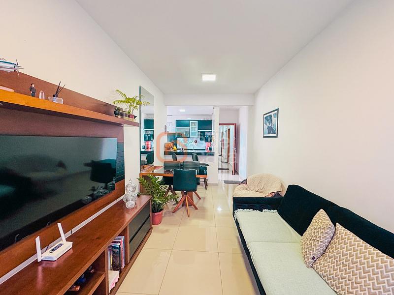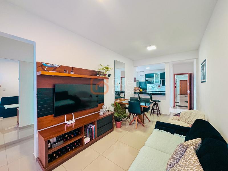 Ampla sala para 2 ambientes, cozinha americana com armários, 2 quartos com planejados, sendo 1 suíte, e banheiro social.