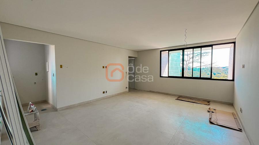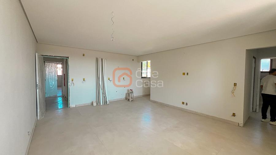 Sala, lavabo, cozinha, 3 quartos, sendo 1 suíte.