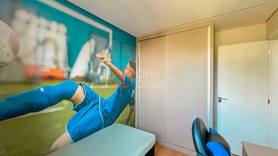 Área intima com porta de correr embutida, composta por 3 quartos, sendo 1 suíte, todos com armários planejados e cama, banheiros com armário e box!