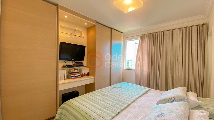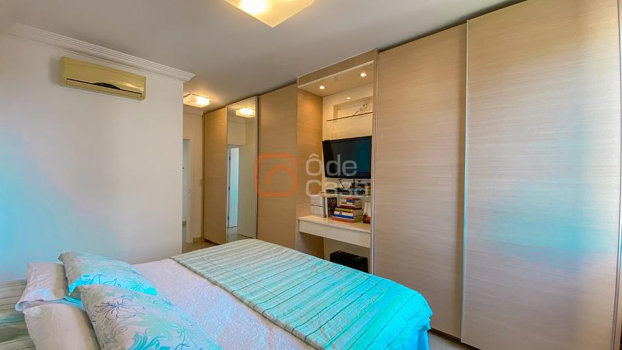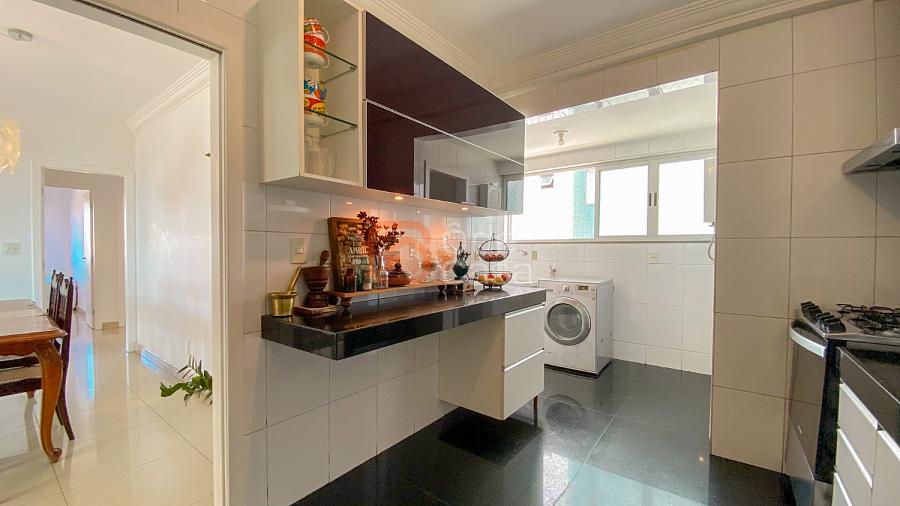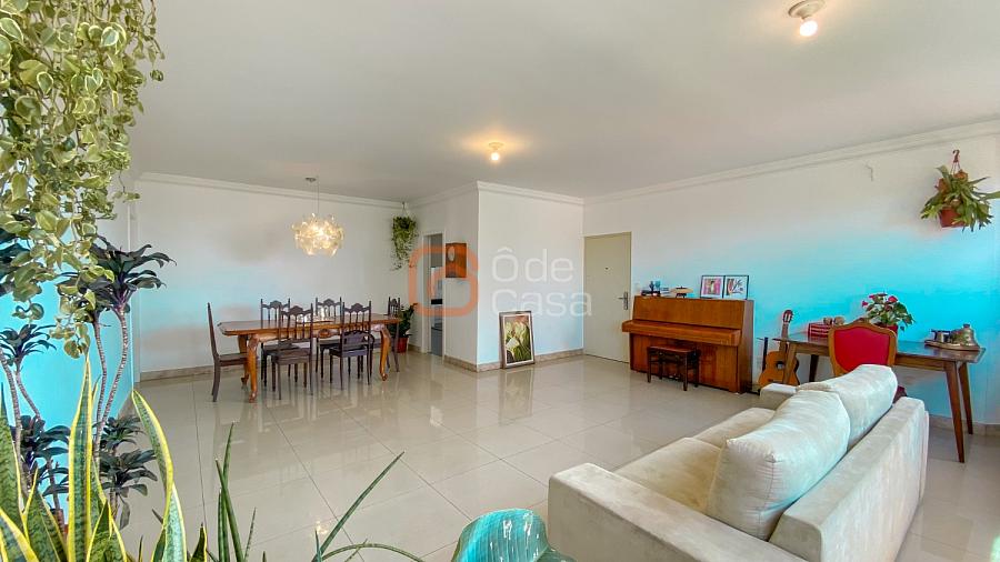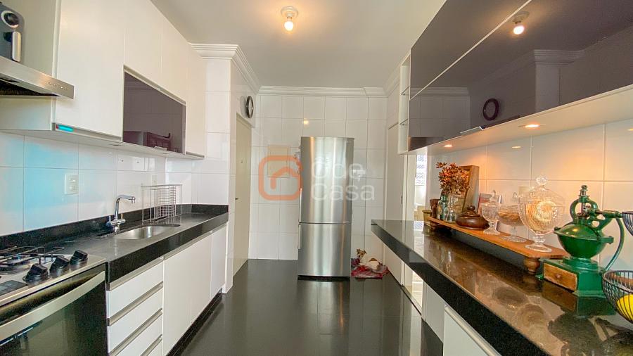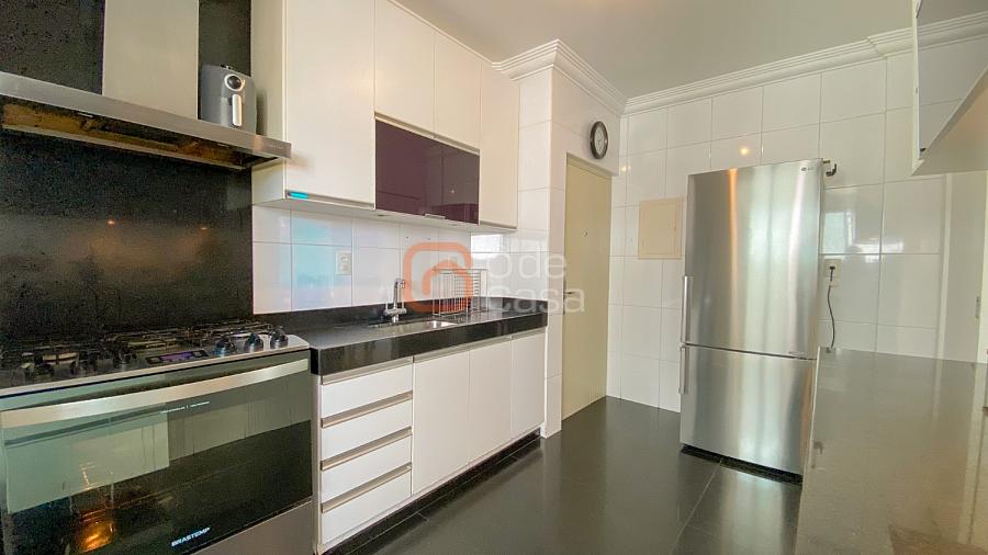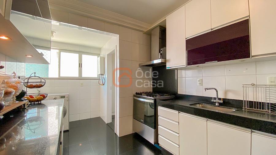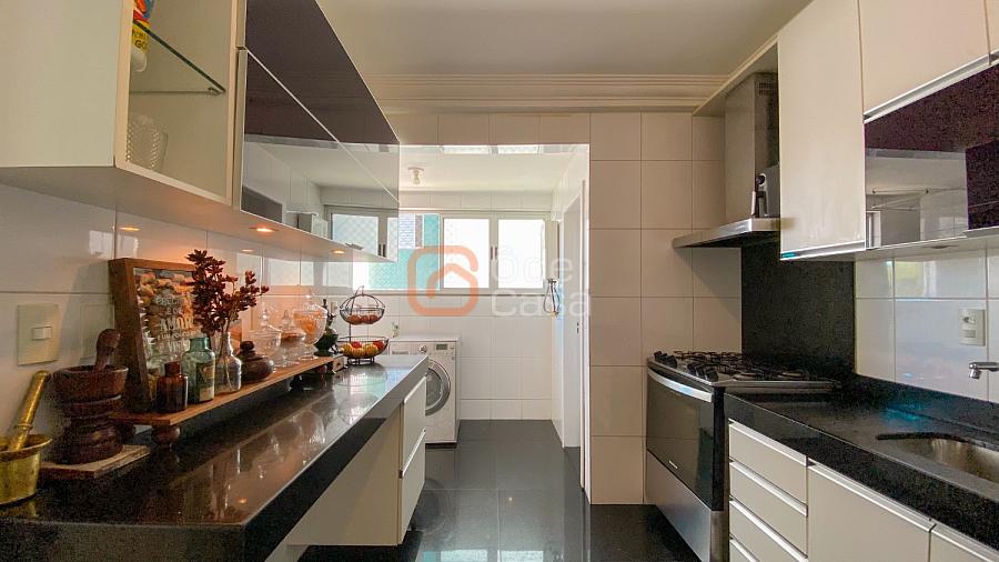 Sala ampla para 3 ambientes, com vista definitiva e exposição ao sol nascente, cozinha com armários, área de serviço independente, DCE completo, 4 quartos, sendo 2 suítes. 3 dos quartos com armários planejados.