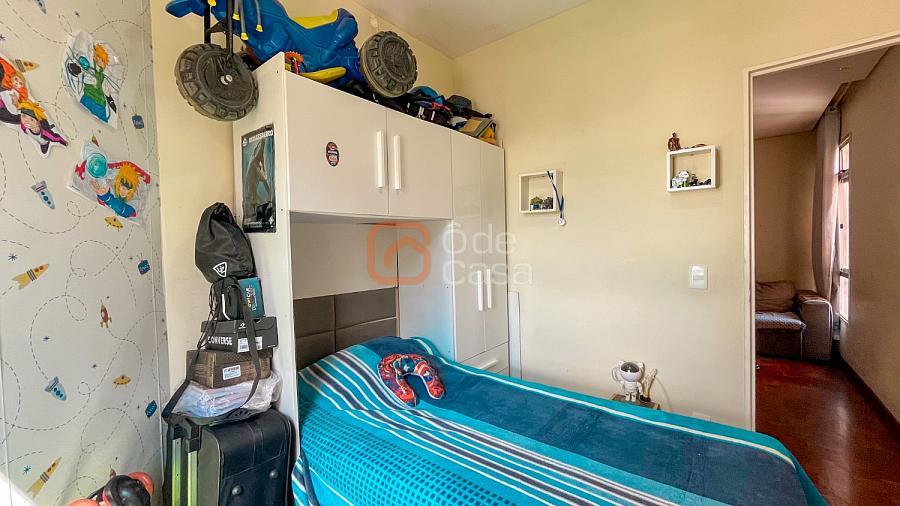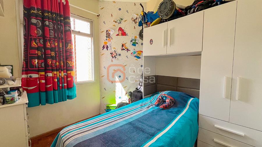 Sala para dois ambientes, cozinha com armários, área de serviço independente, 3 quartos com armários planejados e banheiro social.