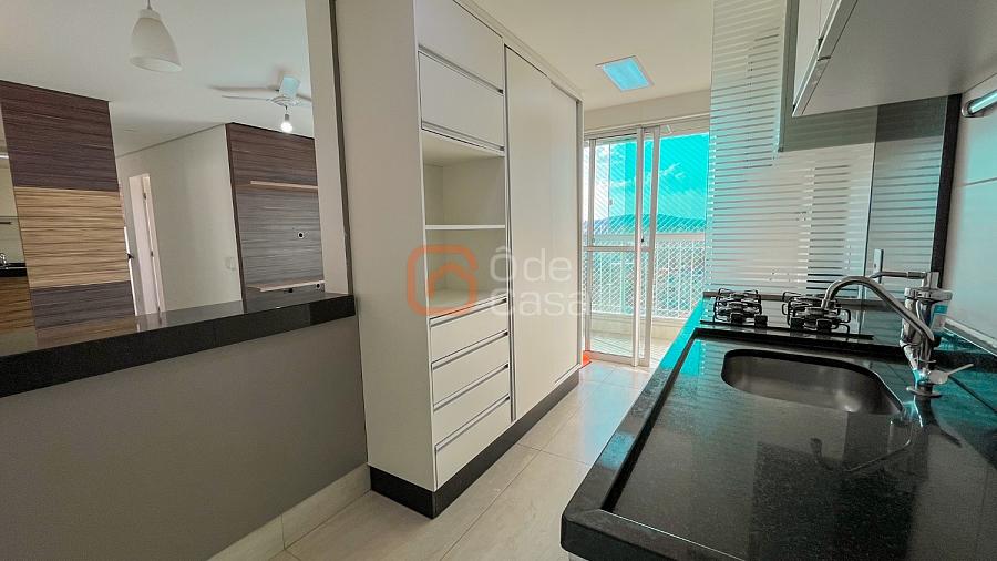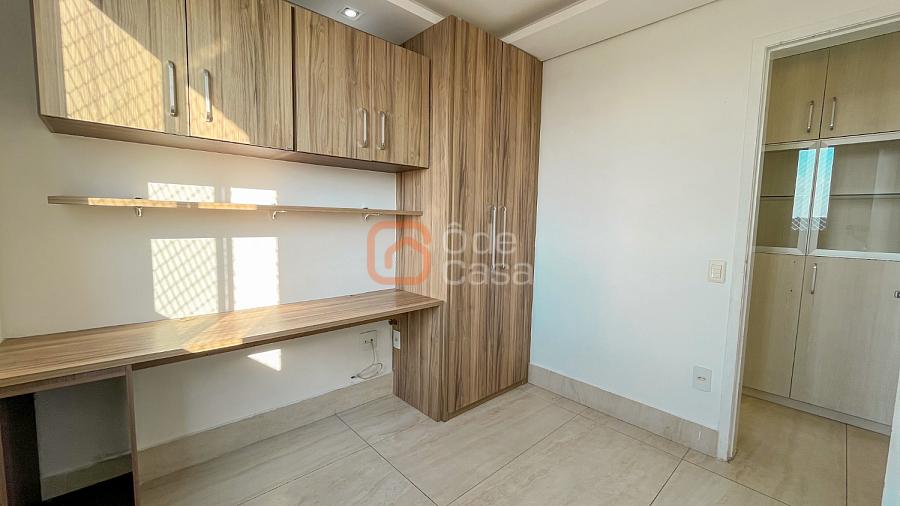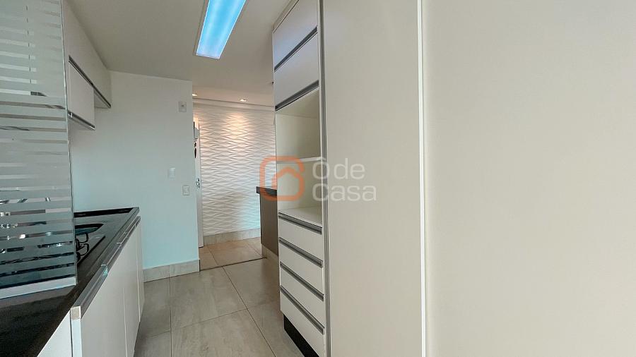 Sala para dois ambientes com painel de TV, espelho, varanda com vista para o pôr do sol com adega, cozinha americana com armário, cooktop e coifa, área de serviço independente. Parte íntima com 3 quartos, sendo 1 suíte, além de banheiro social. Todos os quartos com armários planejados, além de roupeiro no corredor.