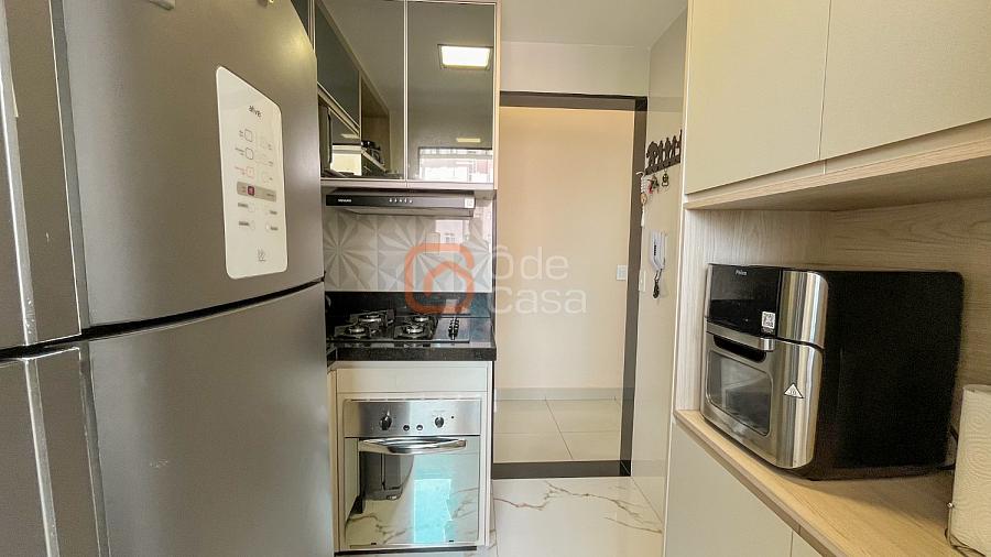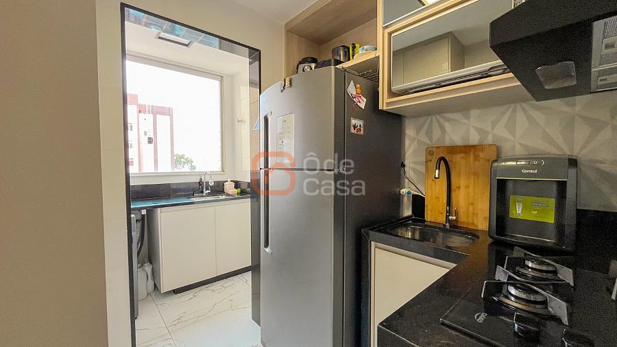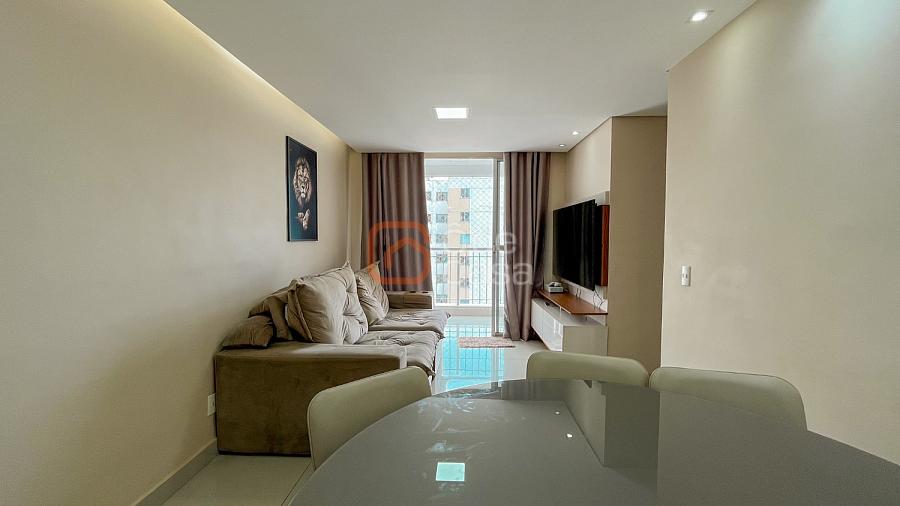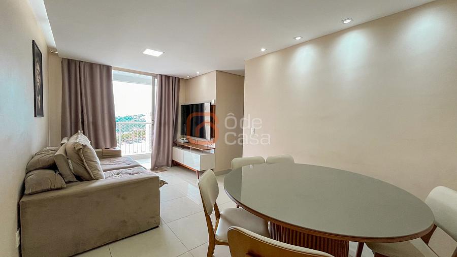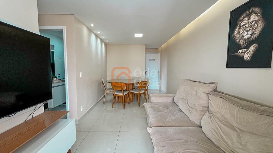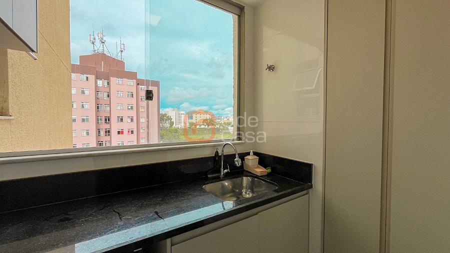 Sala para dois ambientes, varanda, cozinha com armários, área de serviço conjugada com cozinha, 3 quartos, sendo 1 suíte, banheiro social.