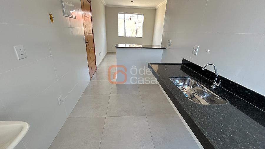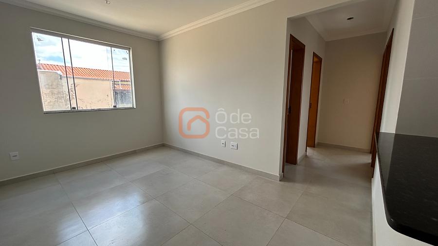 Sala para dois ambientes, cozinha americana com área de serviço conjugada, 3 quartos, banheiro social.