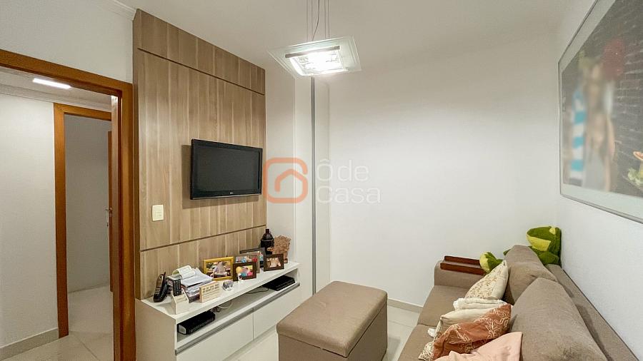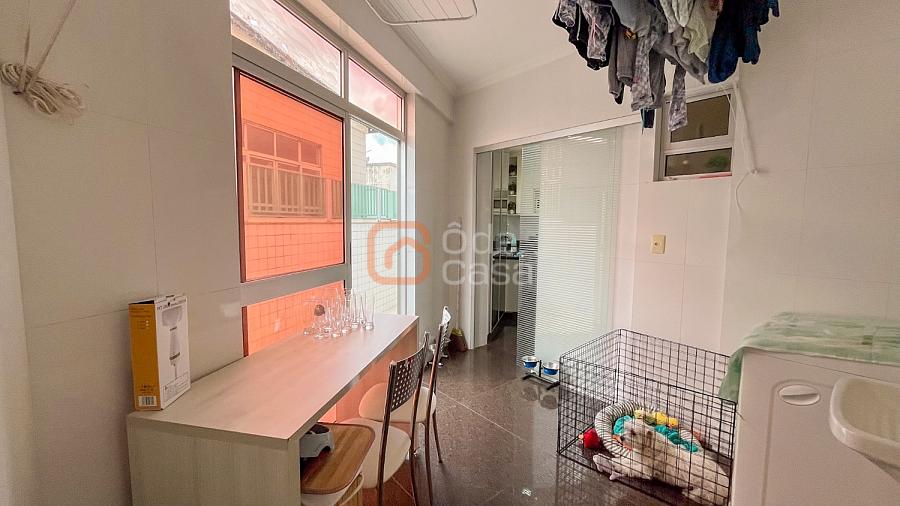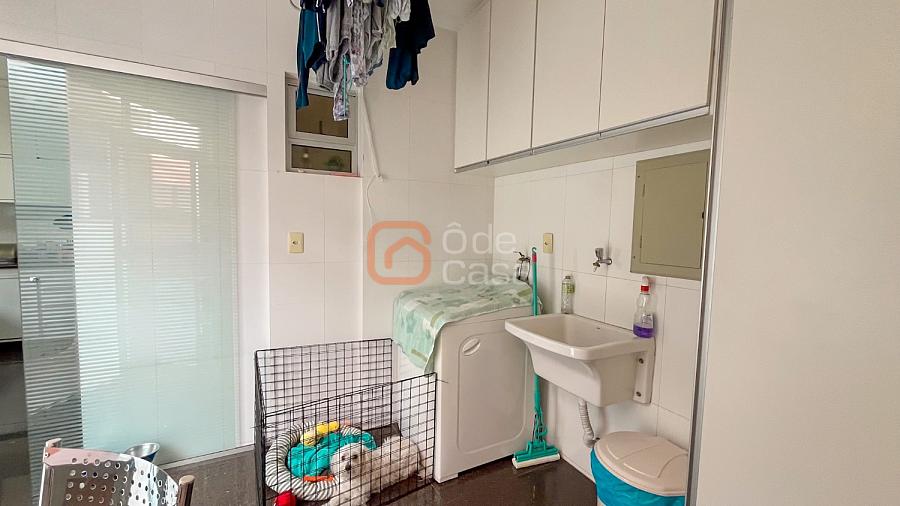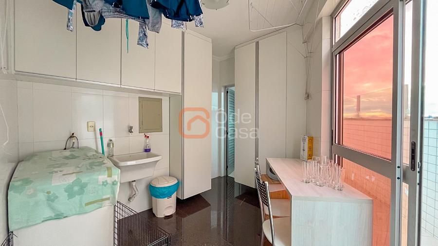 Imóvel amplo composto por sala para 2 ambientes com lavabo e rebaixamento de teto, cozinha com armários planejados com saída para uma varanda lateral e área de serviço separada e DCE