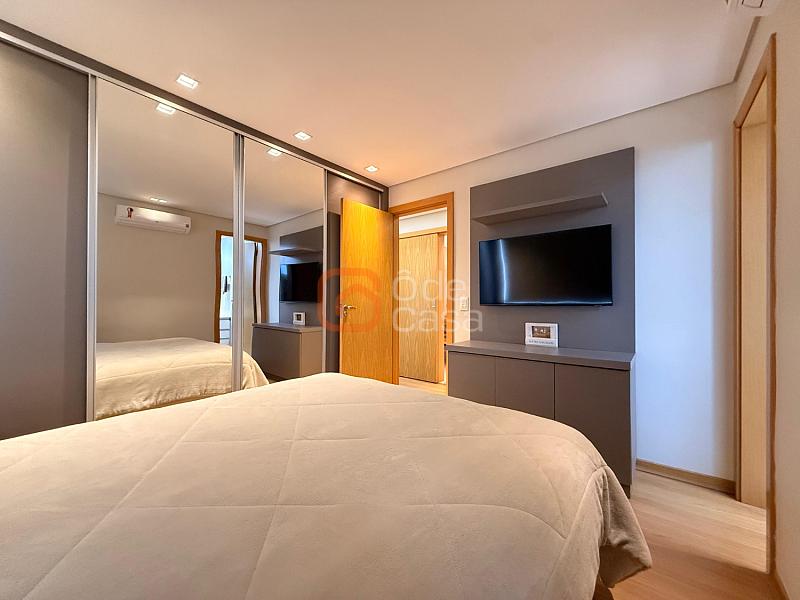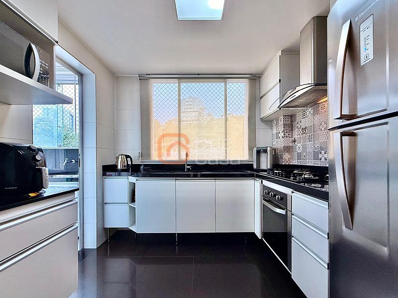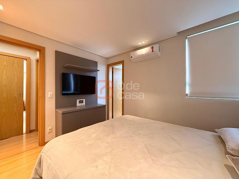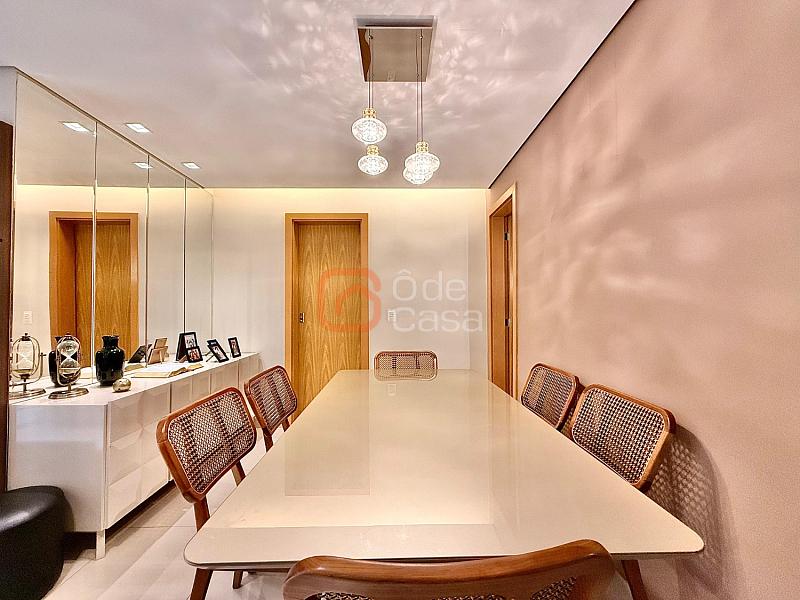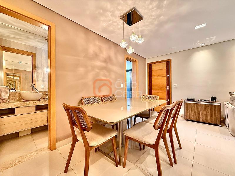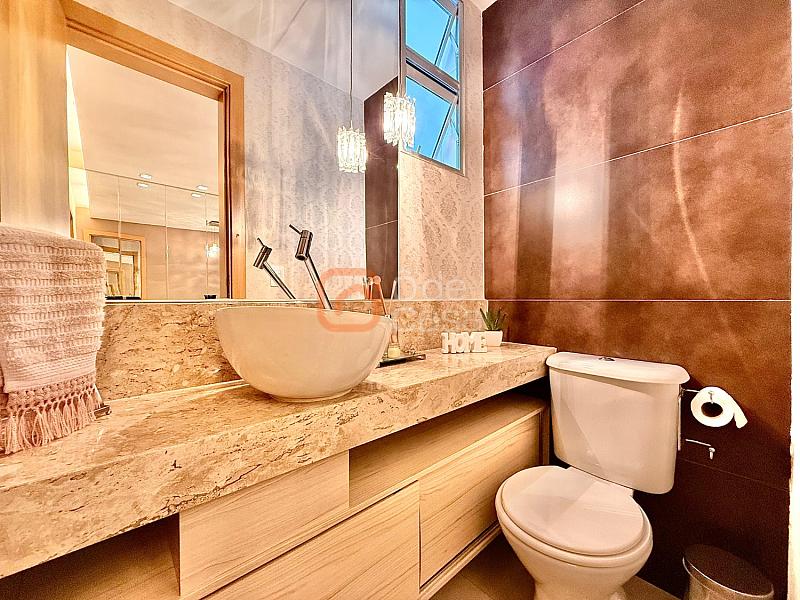 1° PAVIMENTO: Sala em L para dois ambientes com projeto de iluminação, varanda com bancada em granito e armários planejados, cozinha com bancadas em granito e armários planejados, lavanderia separada com armário, 3 quartos sendo 1 suíte, quartos com ar-condicionado, banheiros com bancada em mármore, cuba de sobrepor, armários, box em blindex e aquecimento solar