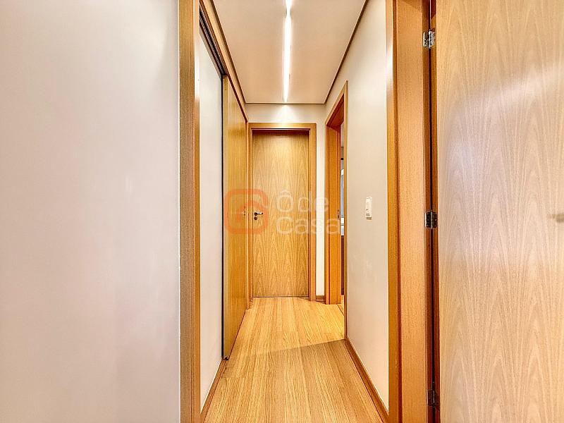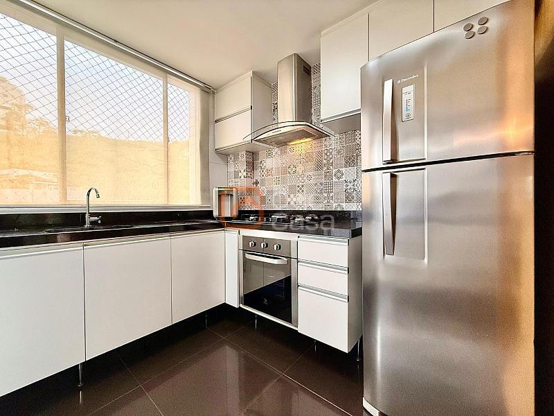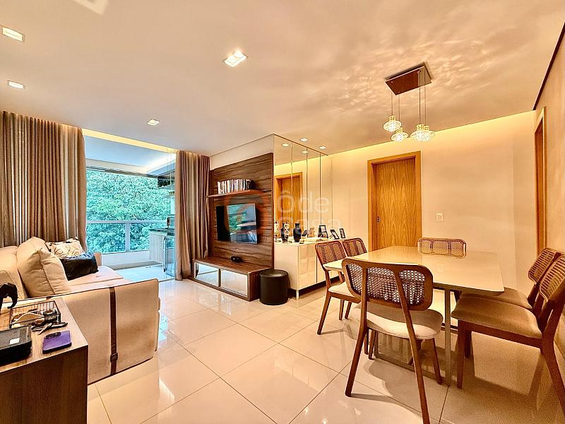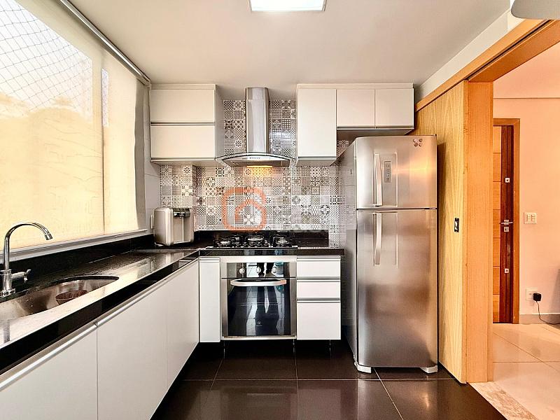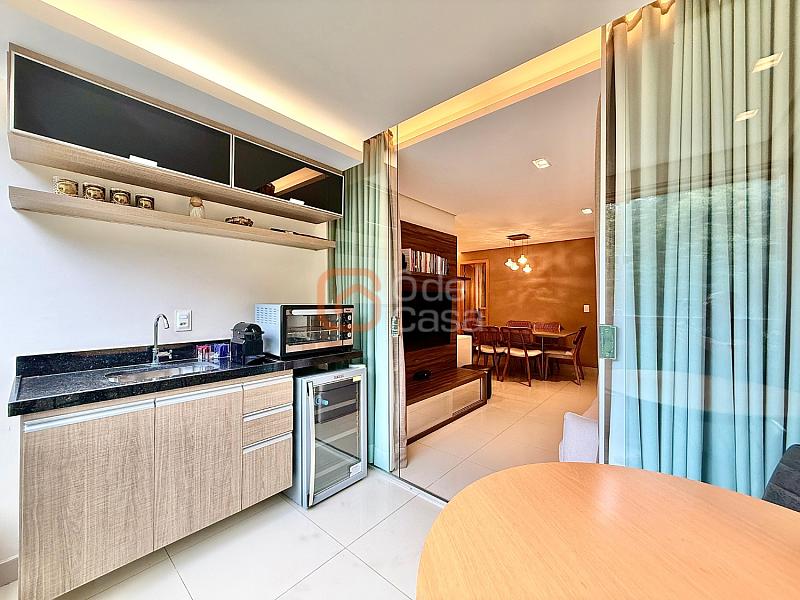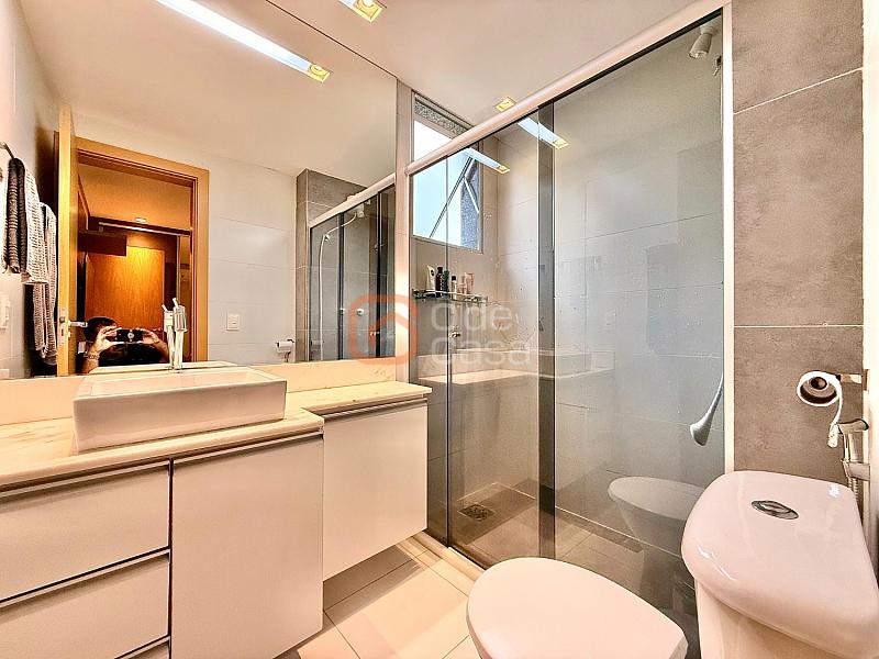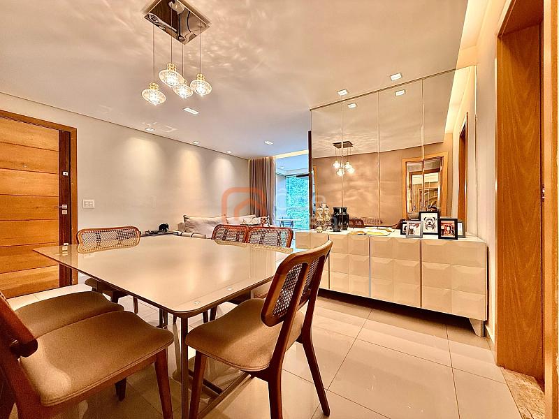 1° PAVIMENTO: Sala em L para dois ambientes com projeto de iluminação, varanda com bancada em granito e armários planejados, cozinha com bancadas em granito e armários planejados, lavanderia separada com armário, 3 quartos sendo 1 suíte, quartos com ar-condicionado, banheiros com bancada em mármore, cuba de sobrepor, armários, box em blindex e aquecimento solar