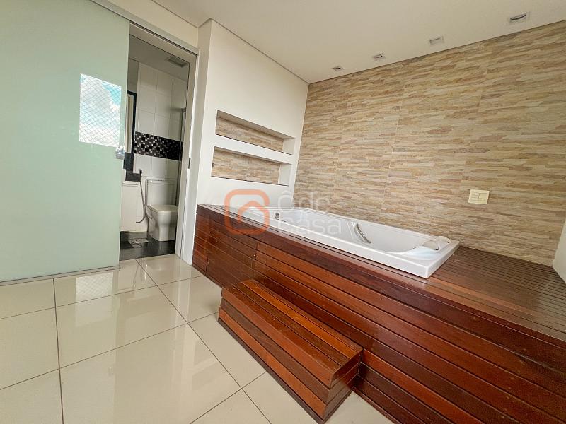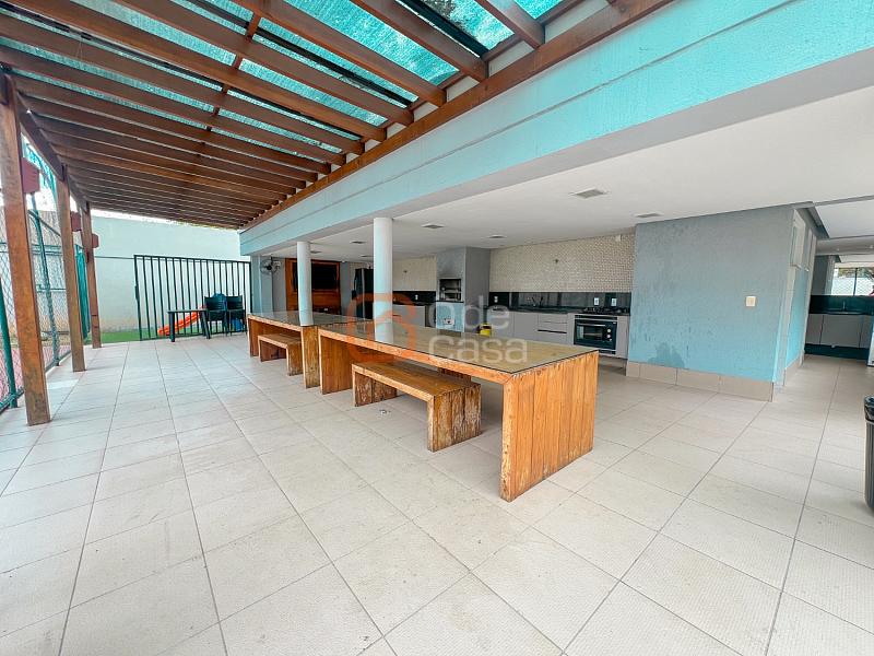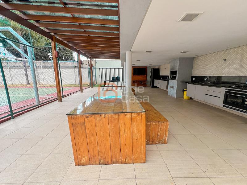 Ampla sala para 2 ambientes, conjugada com varanda gourmet com churrasqueira, cozinha com coifa, cooktop, forno e armários, área de serviço, 3 quartos com armários, sendo 1 suíte com hidromassagem.