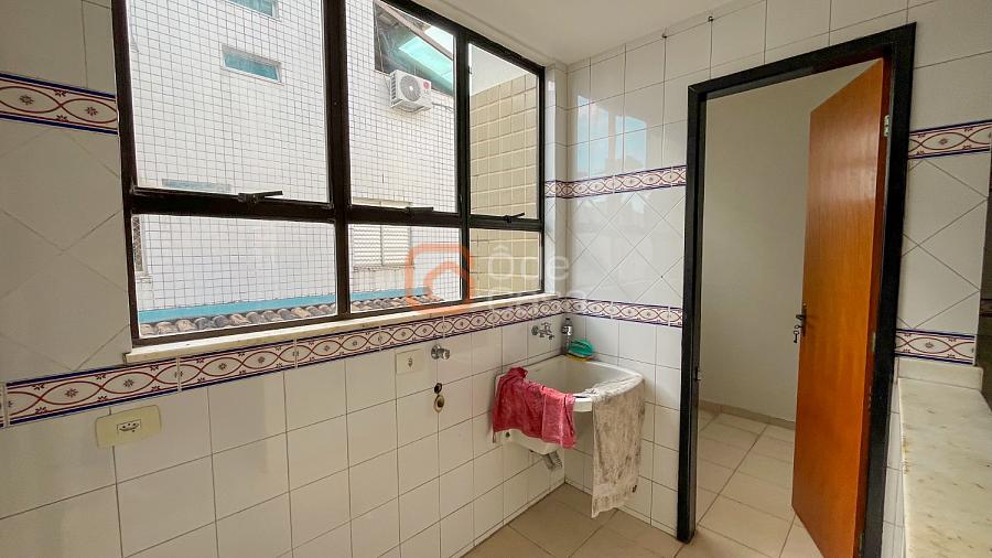 Ampla sala para 2 ambientes com 2 varandas, cozinha com armários, área de serviço, lavabo e despensa, 3 quartos com armários, sendo 1 suíte, e banheiro social.