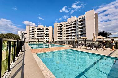 Condomínio com lazer completo, incluindo piscinas, espaço gourmet, quadras e portaria 24 horas