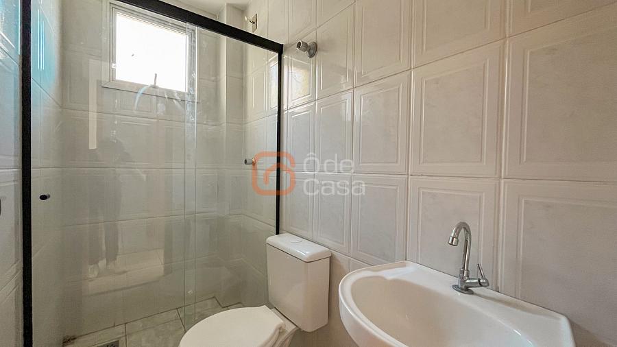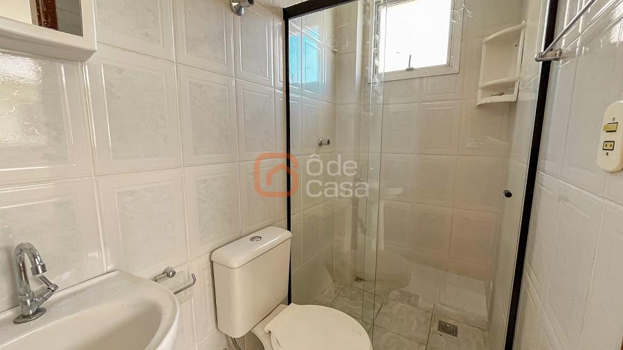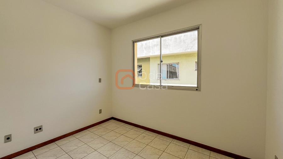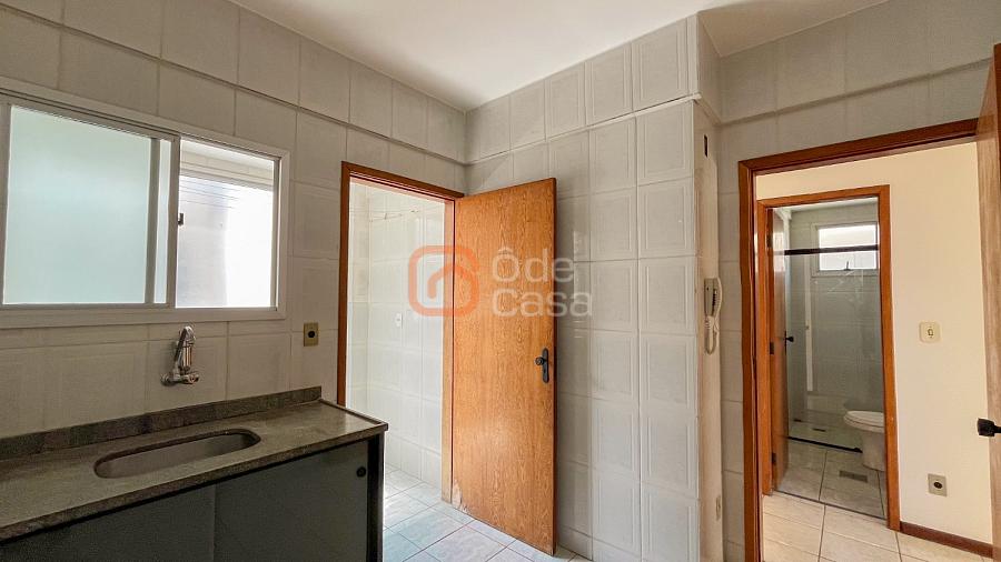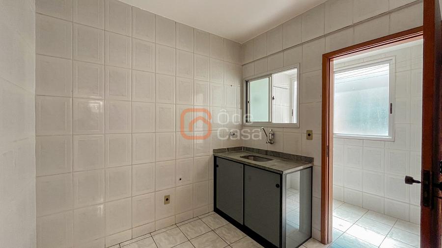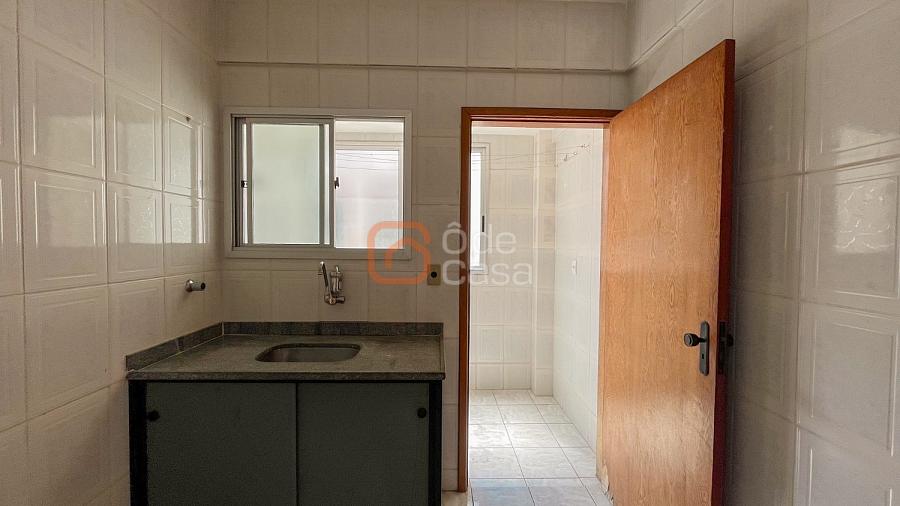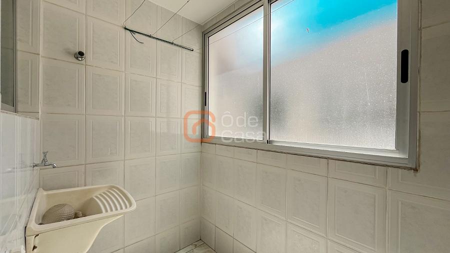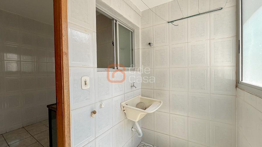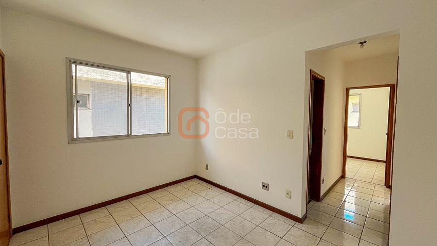 Ampla sala para 2 ambientes, cozinha com armário, área de serviço, 2 quartos, sendo 1 suíte, e banheiro social.