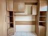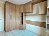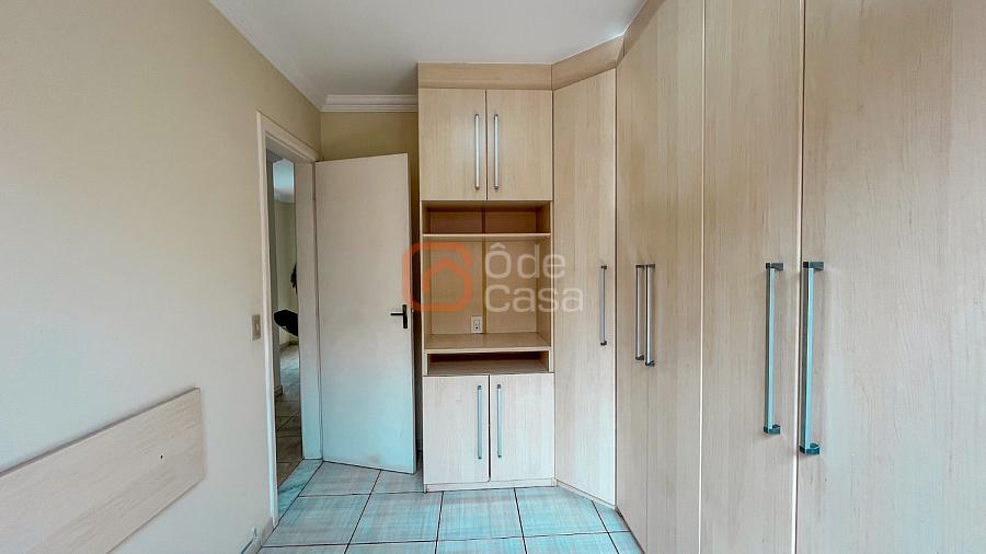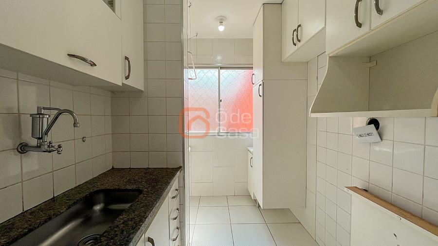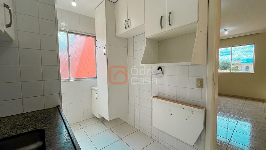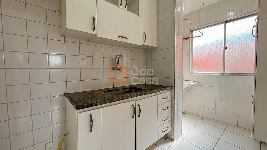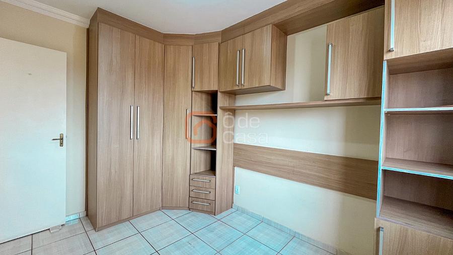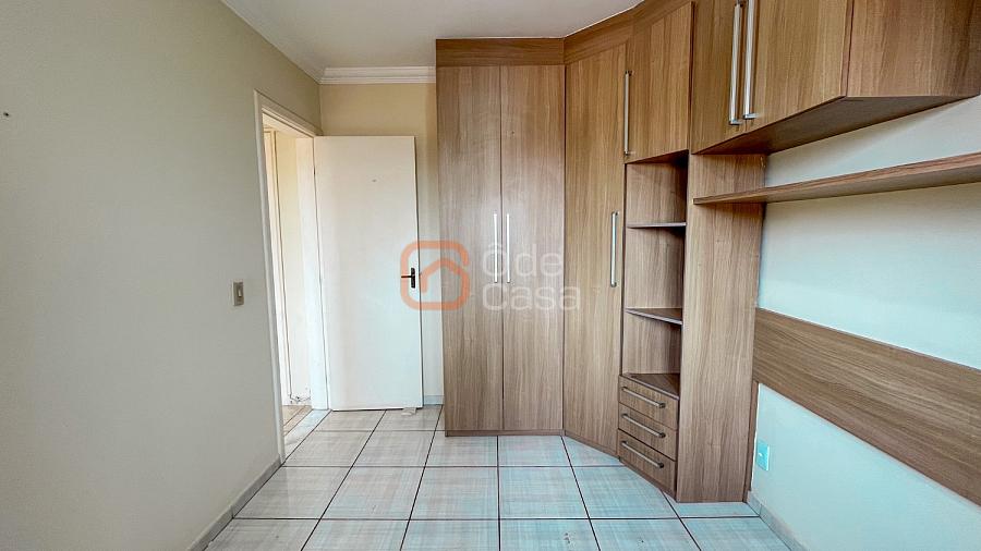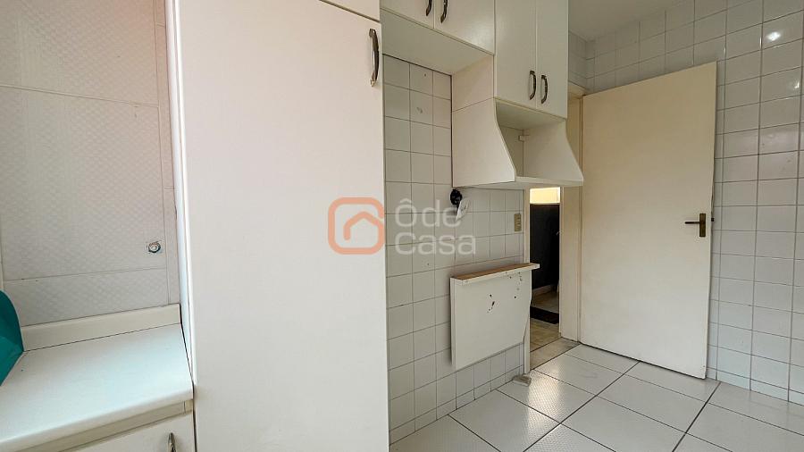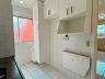 Sala para dois ambientes, cozinha com armários planejados, área de serviço independente com armário, 3 quartos, dois deles com armários e banheiro social.