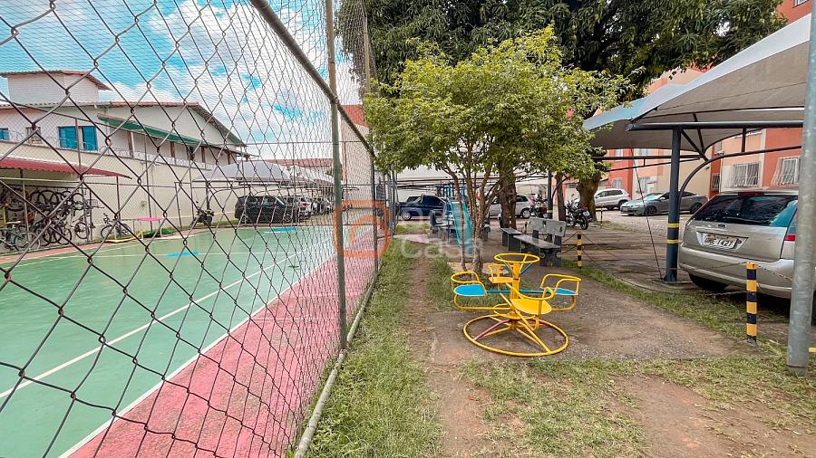 Condomínio com quadra esportiva, bicicletário, playground, câmeras e tag.