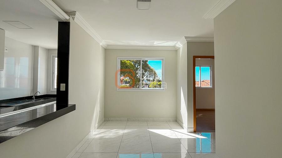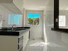 Ampla sala de TV, cozinha com armários e área de serviço, 2 quartos e banheiro social.