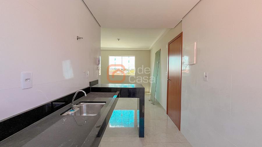 Sala para dois ambientes, cozinha americana com bancada para lanche rápido em granito, 3 quartos com piso laminado, sendo 1 suíte e banheiro social.