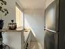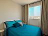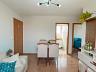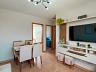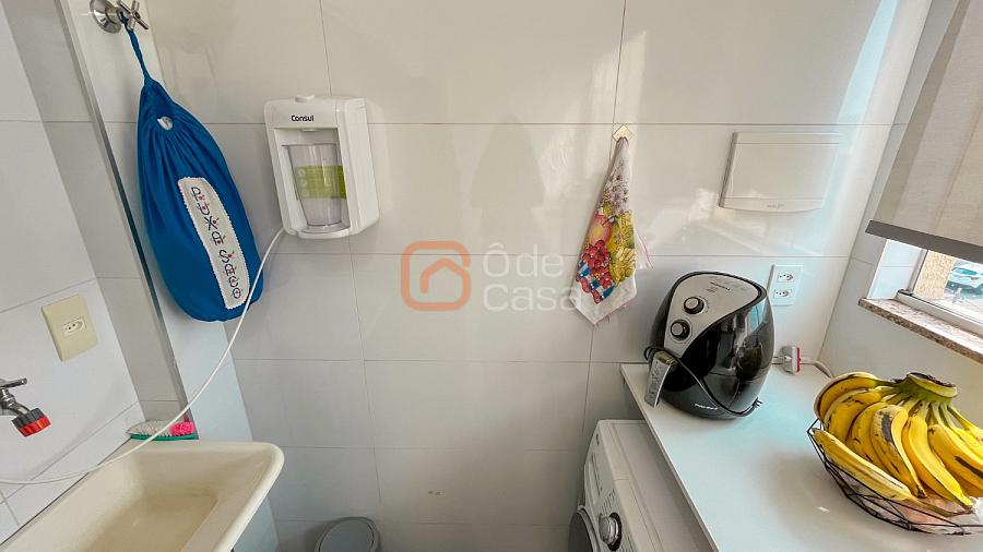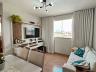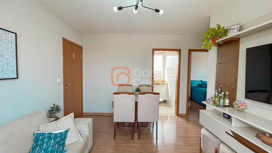 Sala para dois ambientes, cozinha com armário, área de serviço conjugada com a cozinha, 2 quartos com armários e banheiro social.