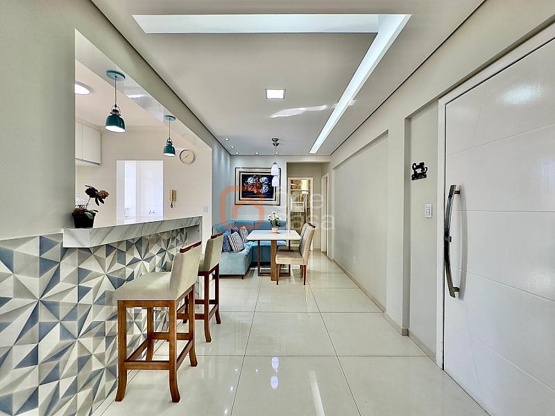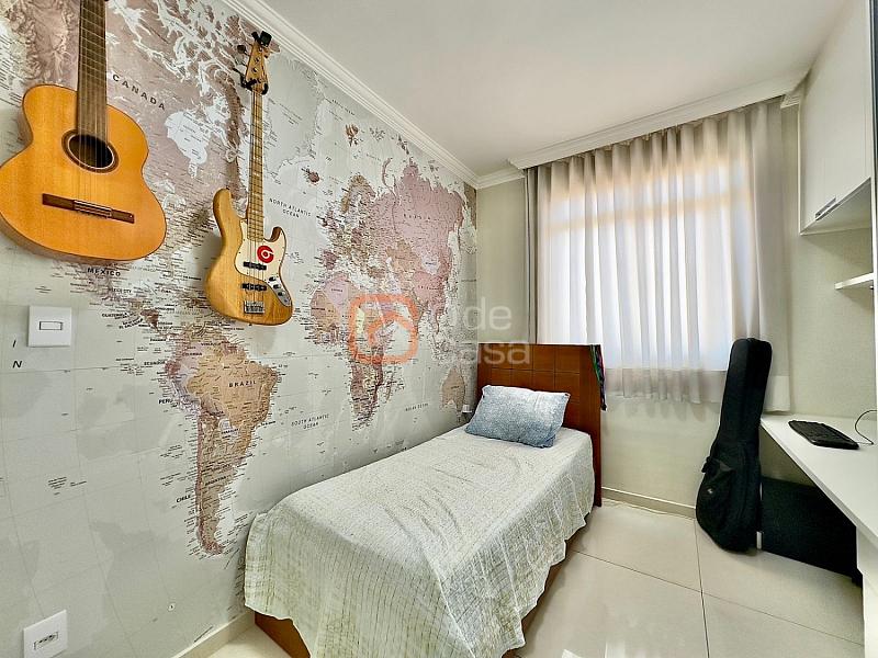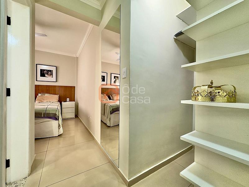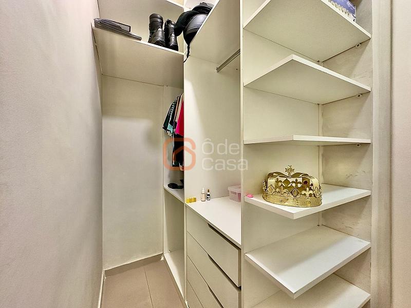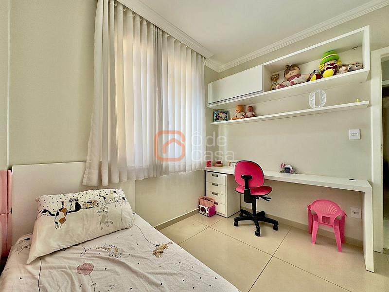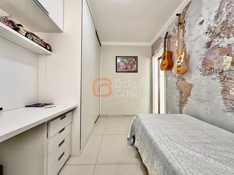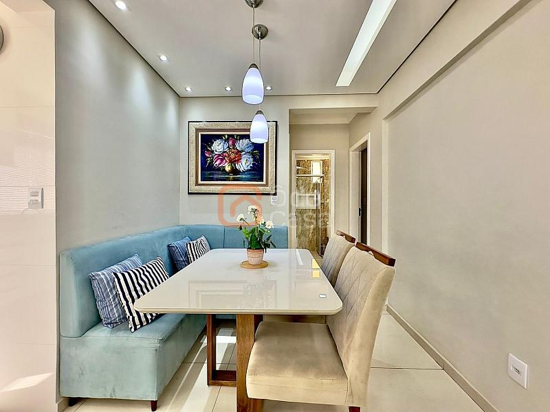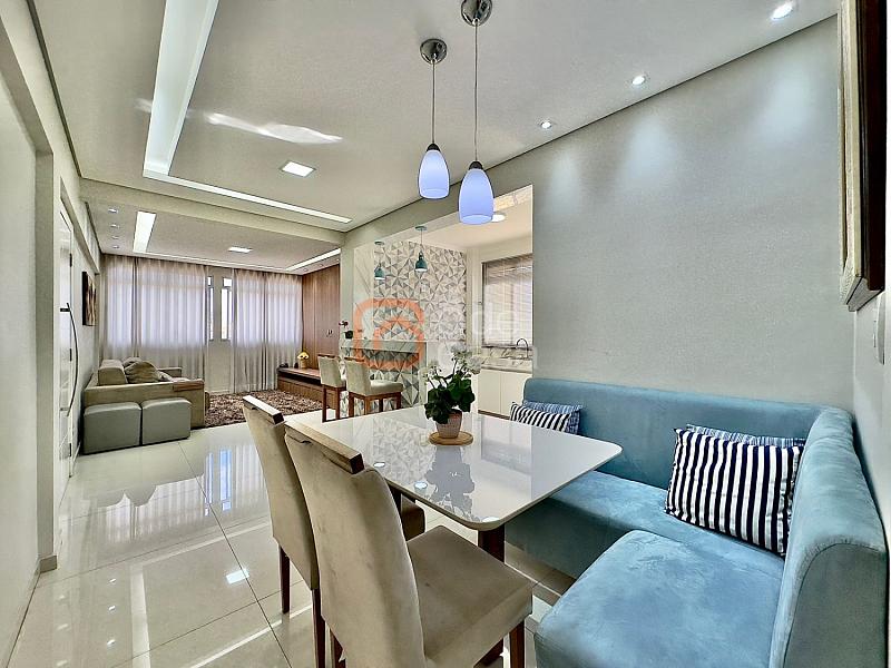 Sala para dois ambientes, cozinha com armários planejados, área de serviço separada, 3 quartos, sendo 1 suíte com closet, e banheiro social com armário e box em blindex.