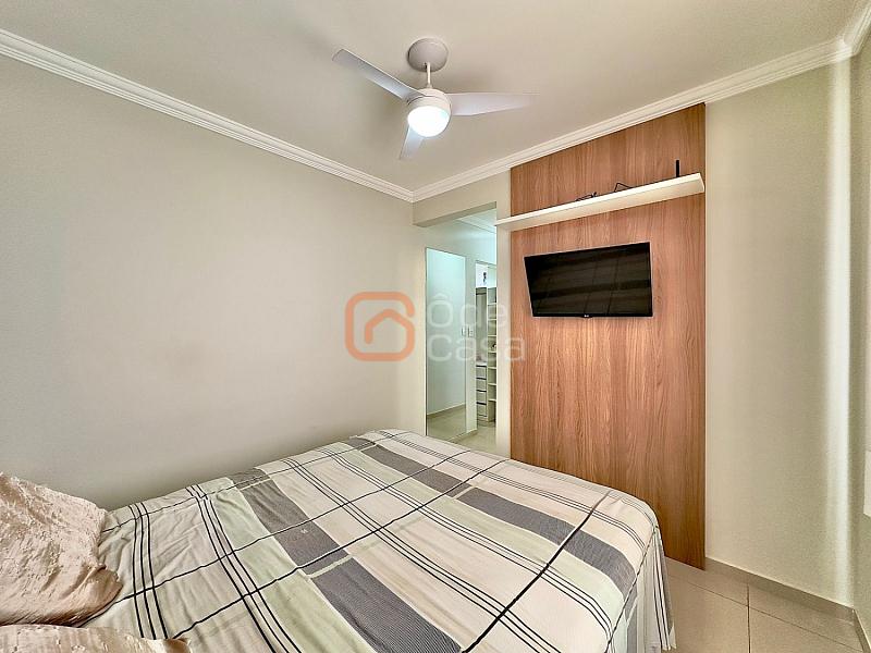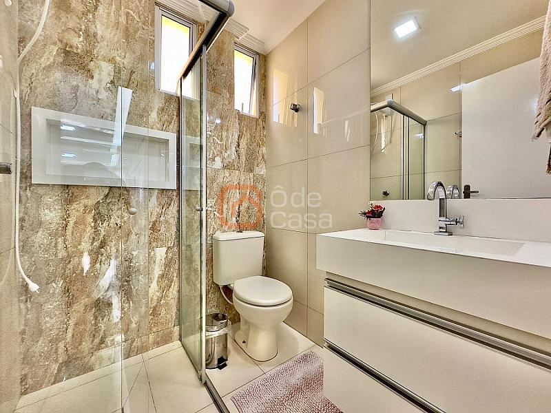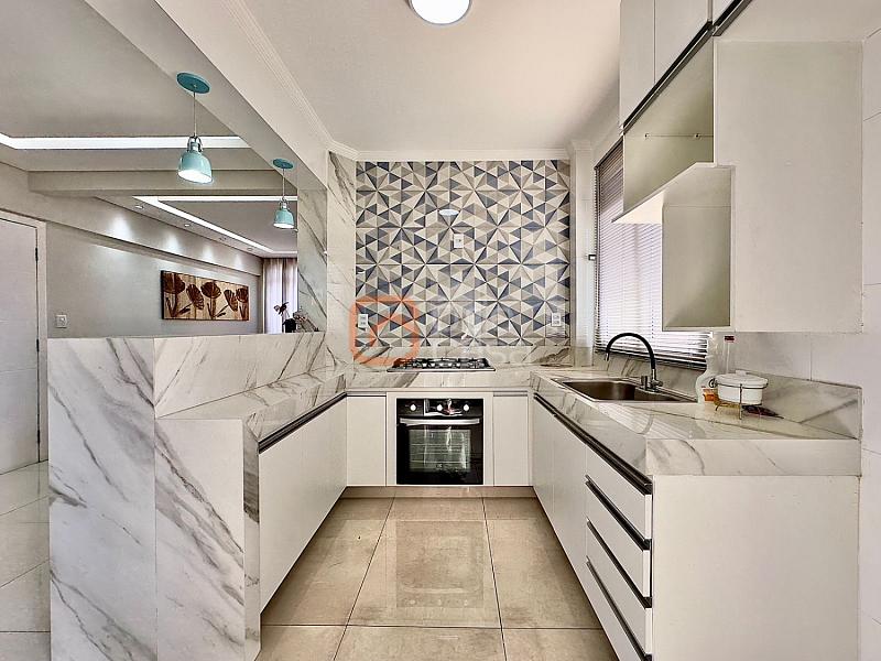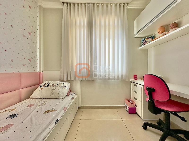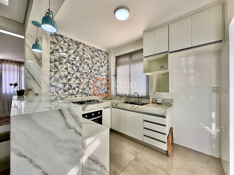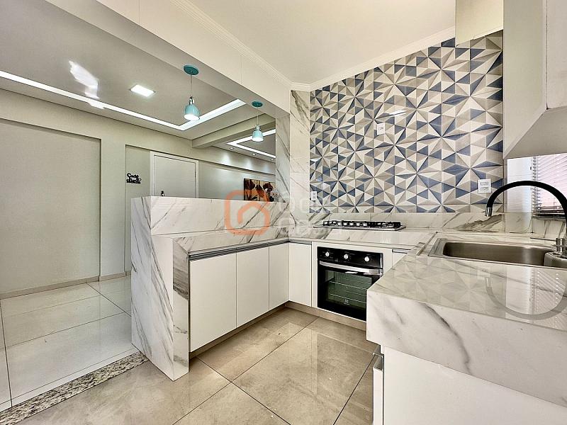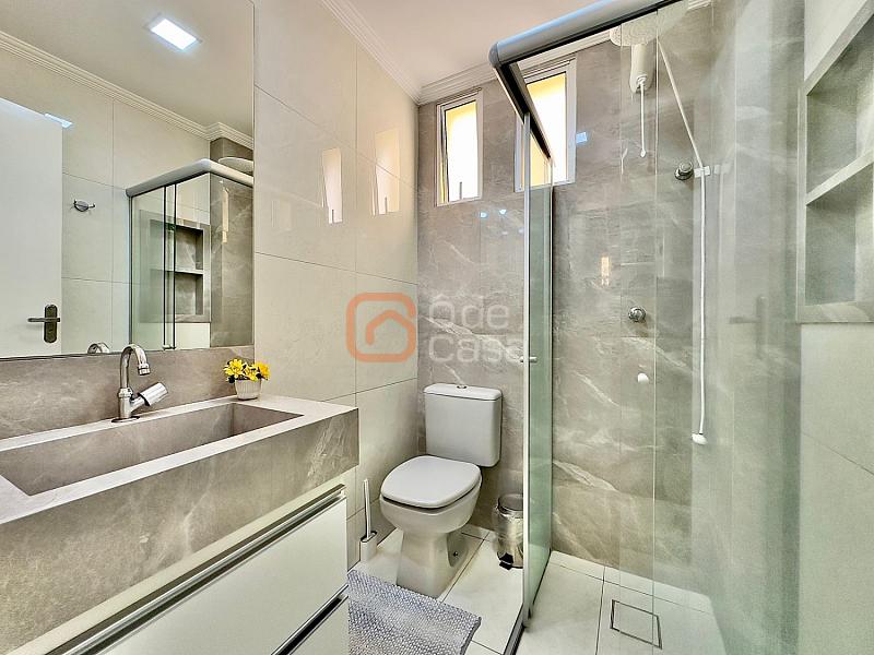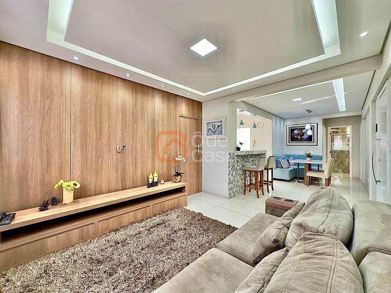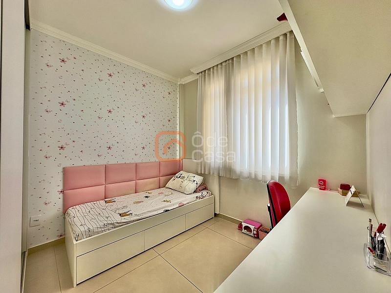 Sala para dois ambientes, cozinha com armários planejados, área de serviço separada, 3 quartos, sendo 1 suíte com closet, e banheiro social com armário e box em blindex.