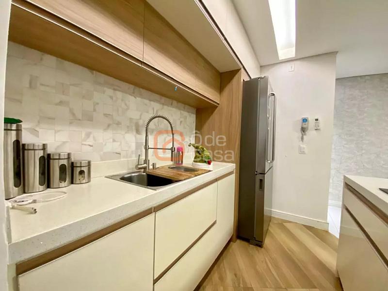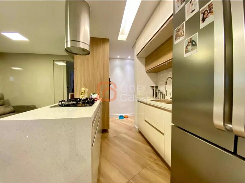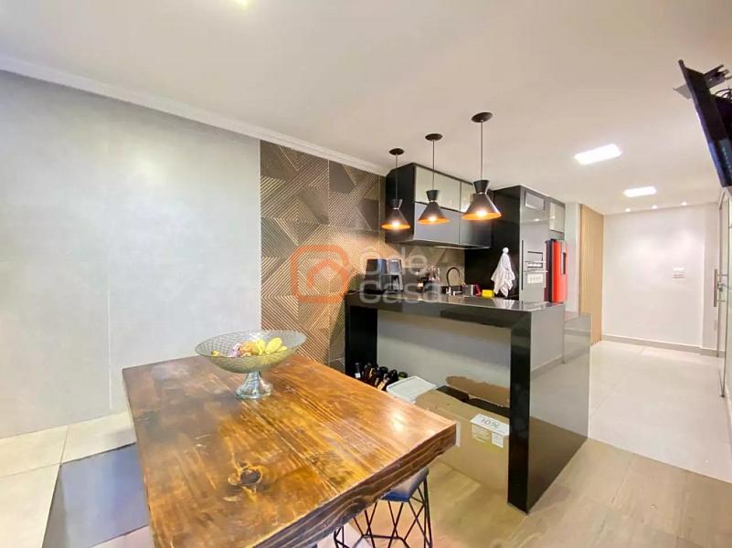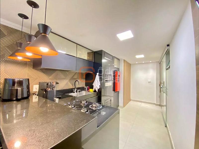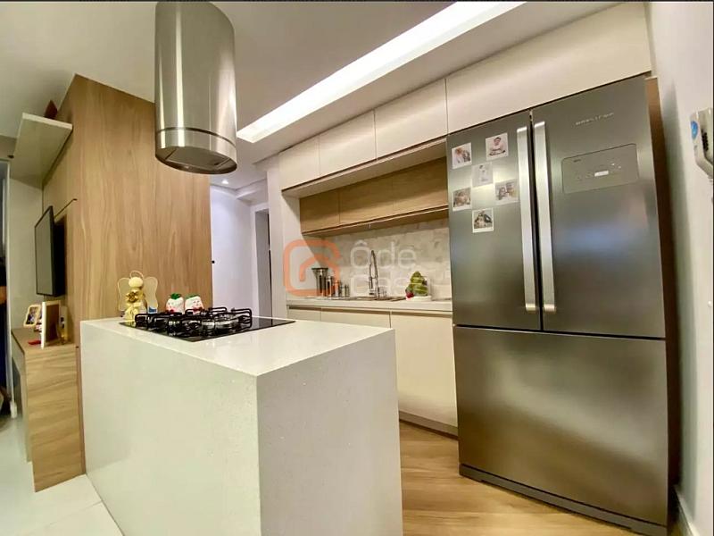 Sala de estar ampla, cozinha americana, fogão embutid, coifa, dois quartos sendo 01 suite, ambos com armários; área privativa em U; gourmet completo e lavanderia separada;