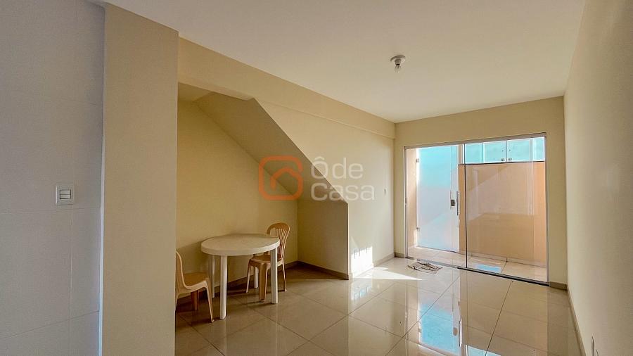 Ampla sala para 2 ambientes, cozinha, 2 quartos, banheiro social, 2 áreas externas, sendo uma com saída pela sala e outra pela cozinha.