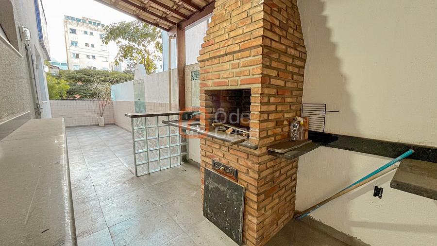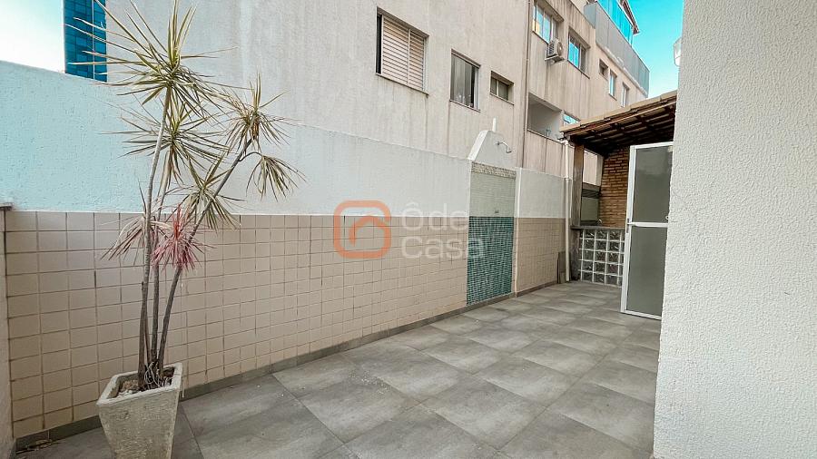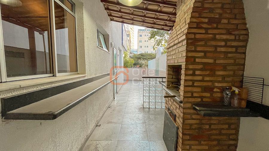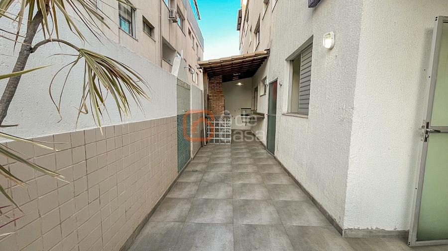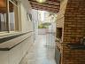 Área privativa com espaço gourmet com churrasqueira e pia de apoio com bancadas em granito, ducha, parte descoberta com vista pra rua e lavanderia.