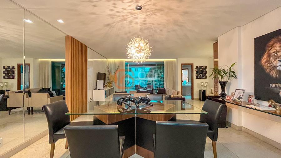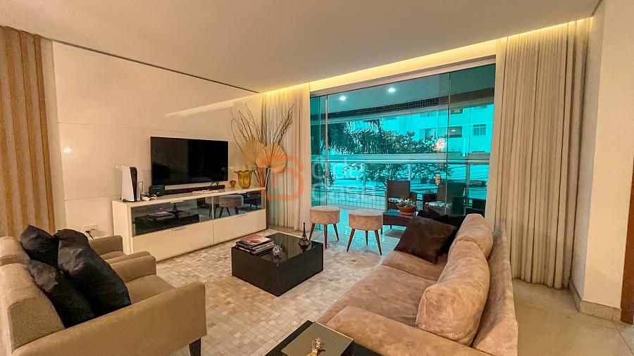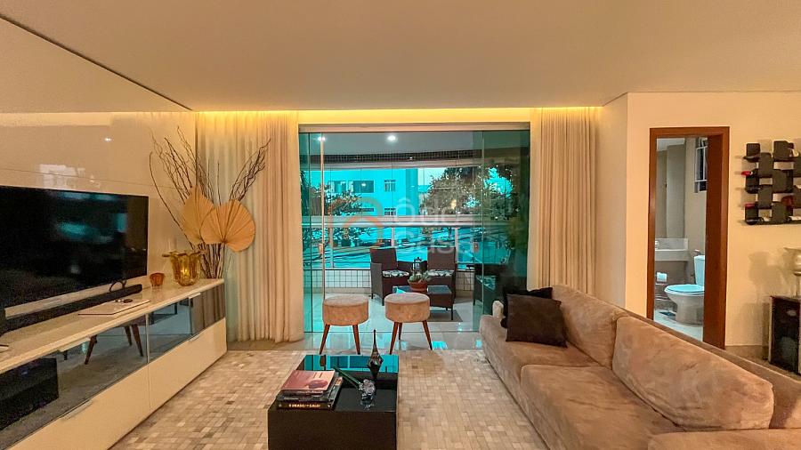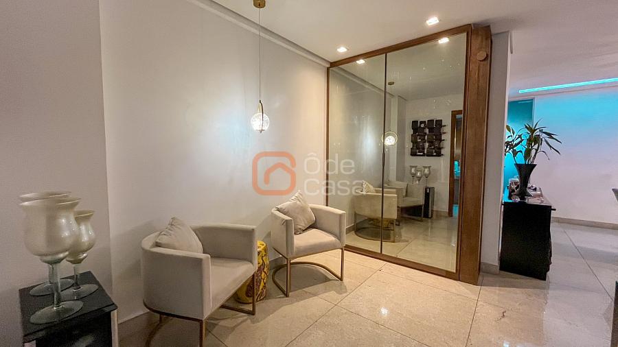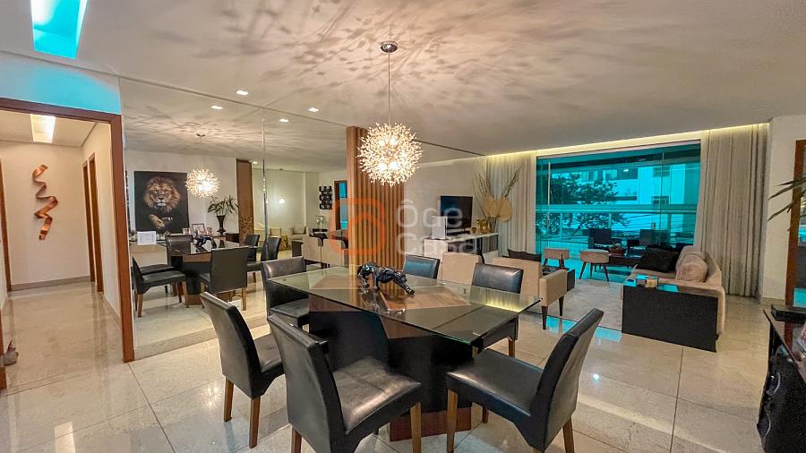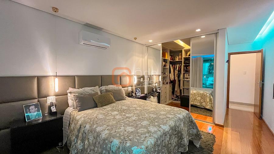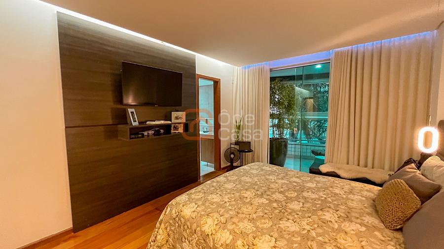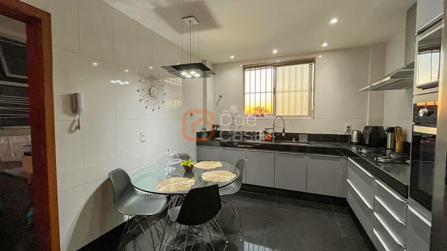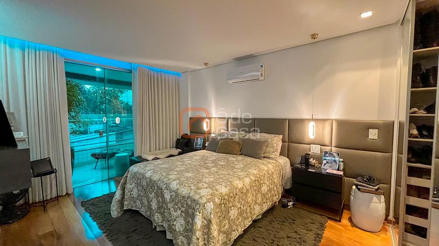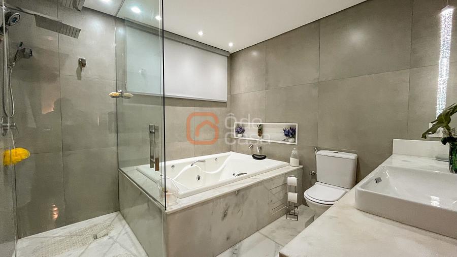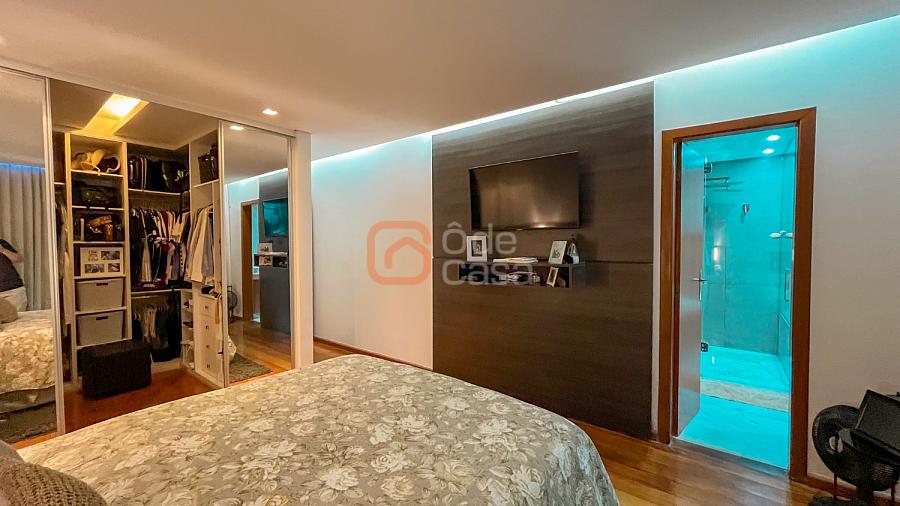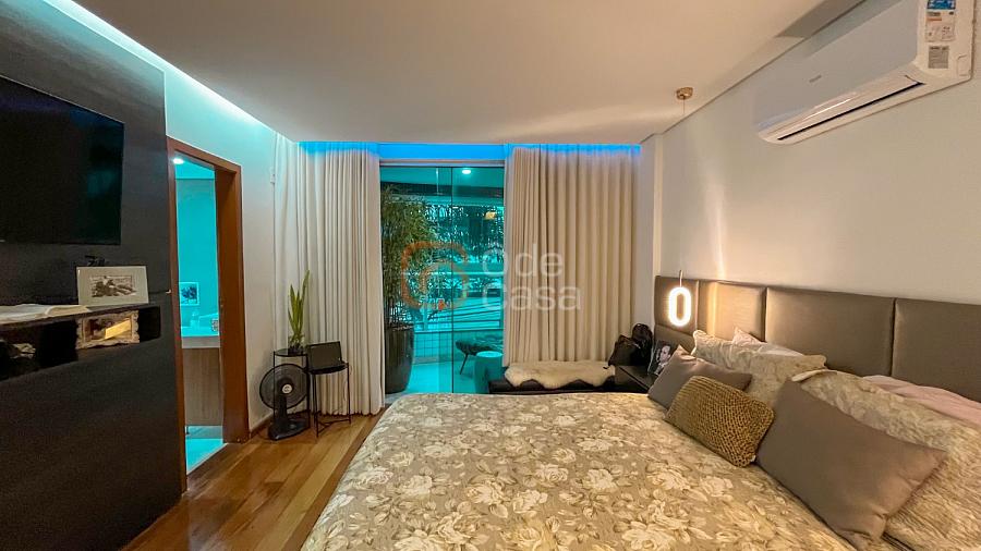 Ampla sala para 3 ambientes com cristaleira, varanda com cortina de vidro, lavabo, cozinha com armários, 4 quartos com planejados, sendo 1 suíte master, 1 suíte e 2 semi-suítes, área de serviço e DCE completa, quarto e banheiro.