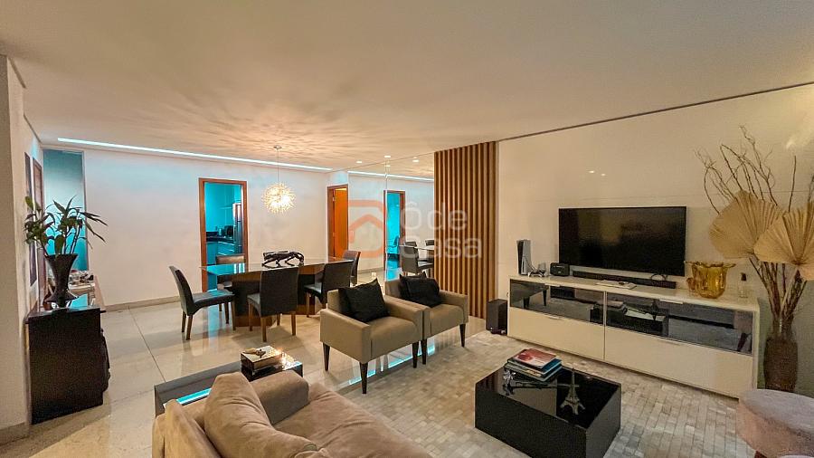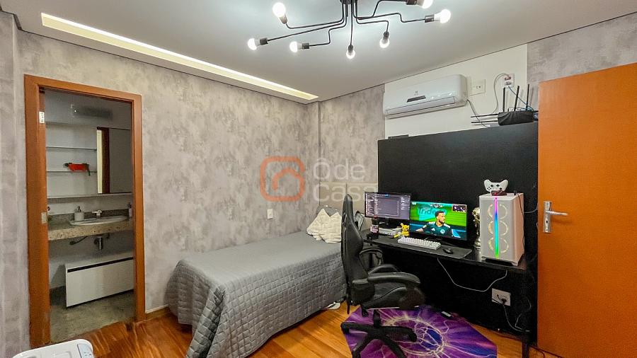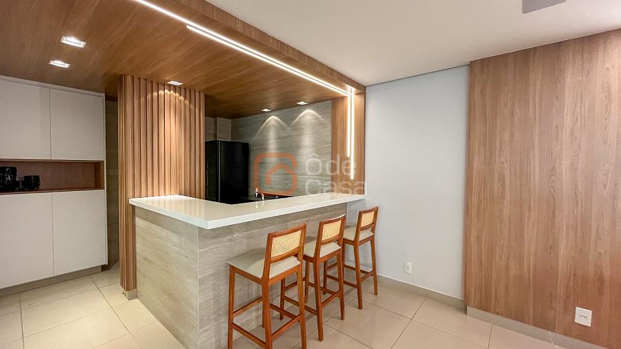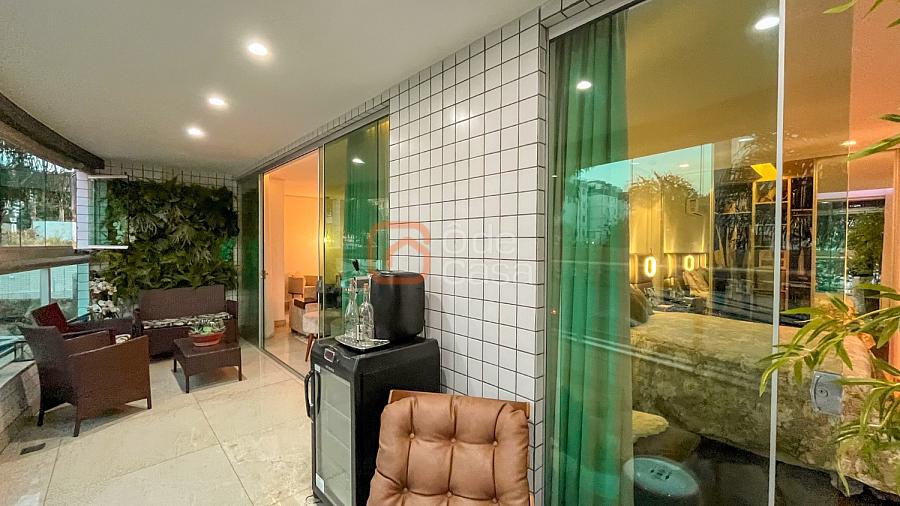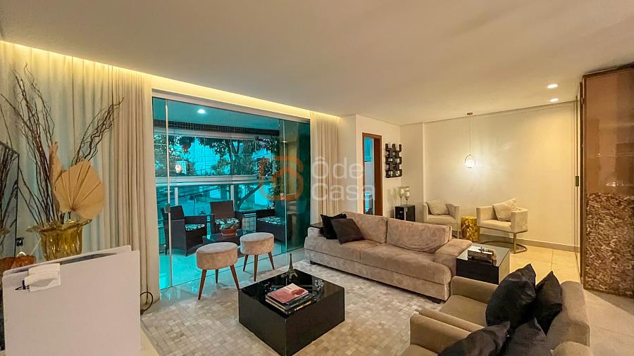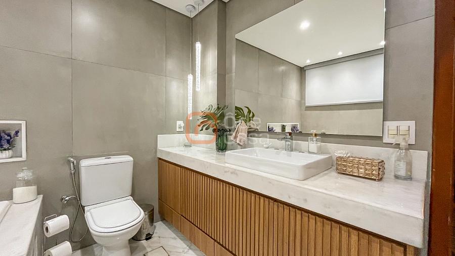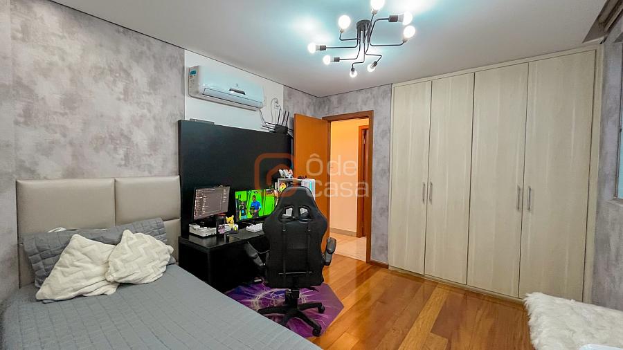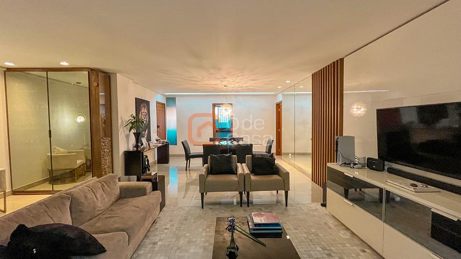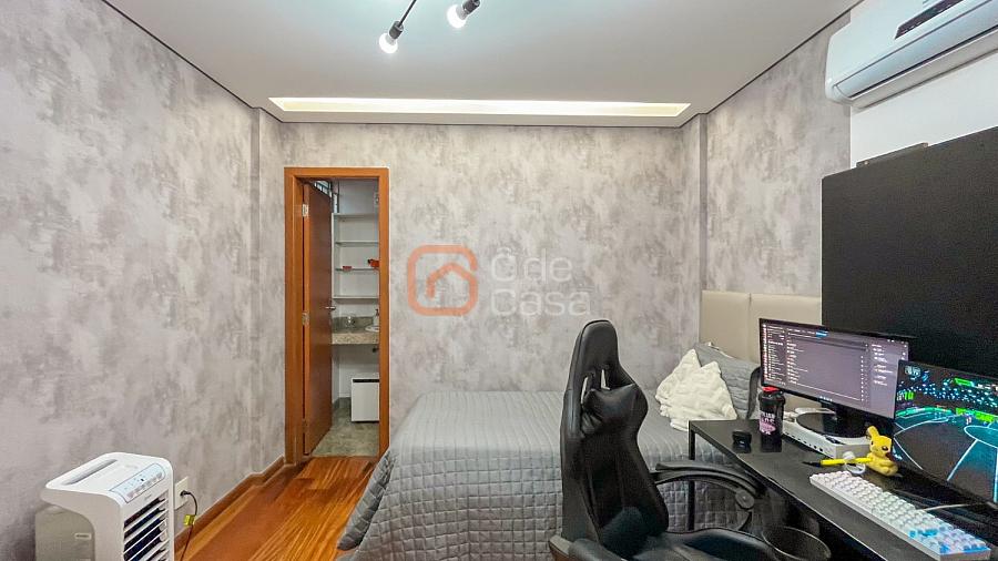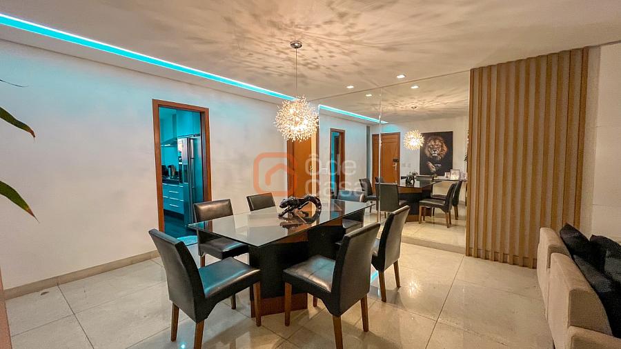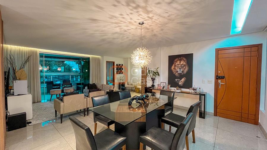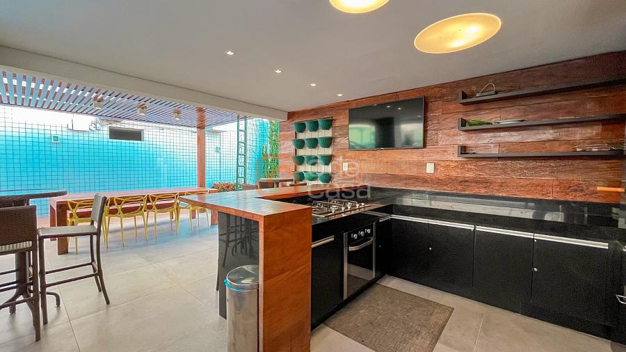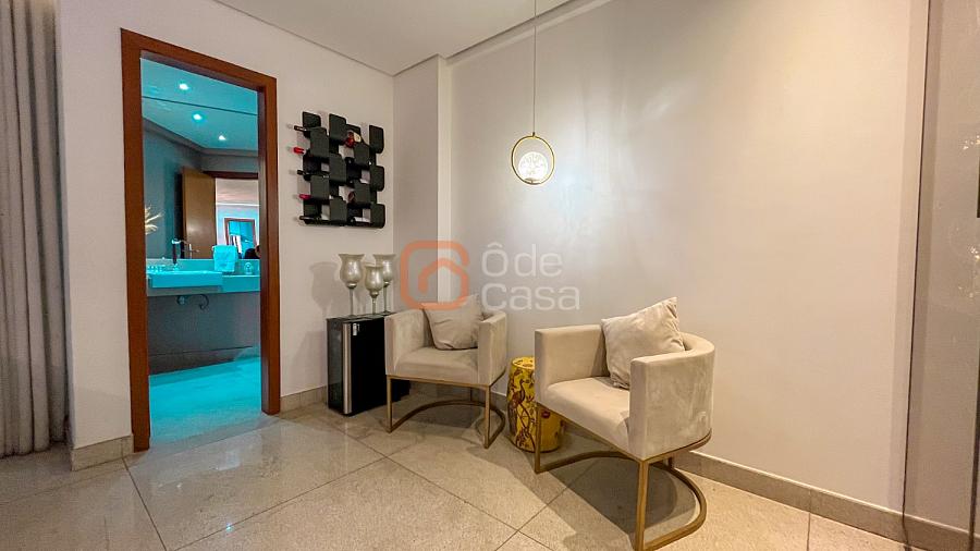 Ampla sala para 3 ambientes com cristaleira, varanda com cortina de vidro, lavabo, cozinha com armários, 4 quartos com planejados, sendo 1 suíte master, 1 suíte e 2 semi-suítes, área de serviço e DCE completa, quarto e banheiro.
