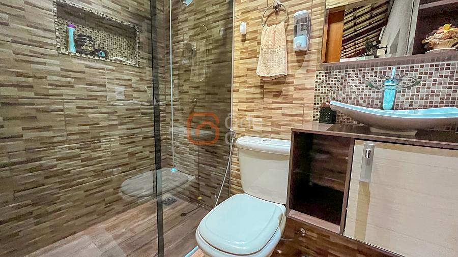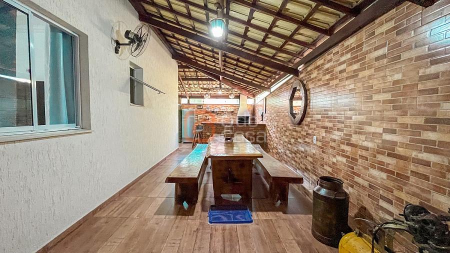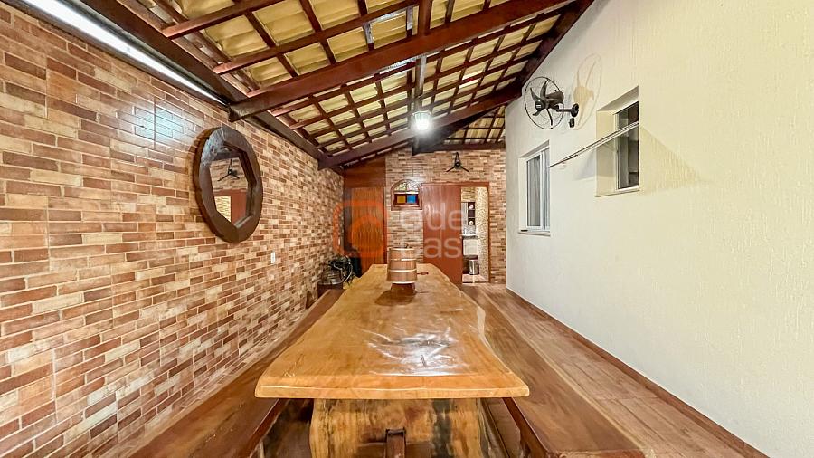 Sala de TV, cozinha com armários, 2 quartos e banheiro social. Parte externa em “U” coberta com área gourmet com churrasqueira e bancada em granito, ducha, banheiro, home office, quarto de despejo e lavanderia independente.
