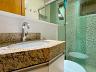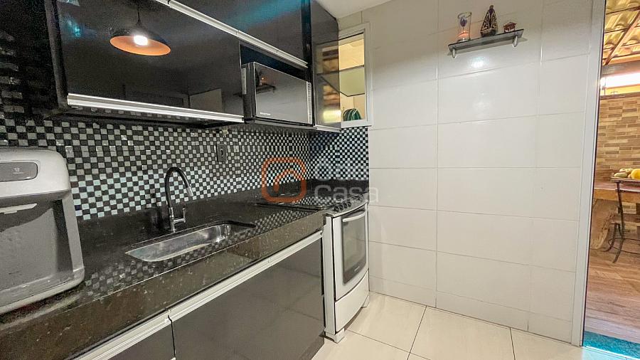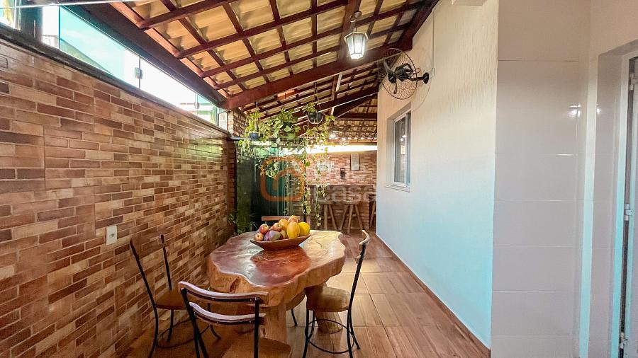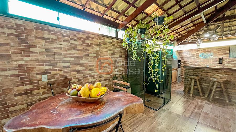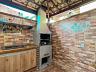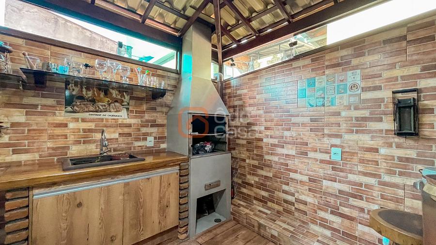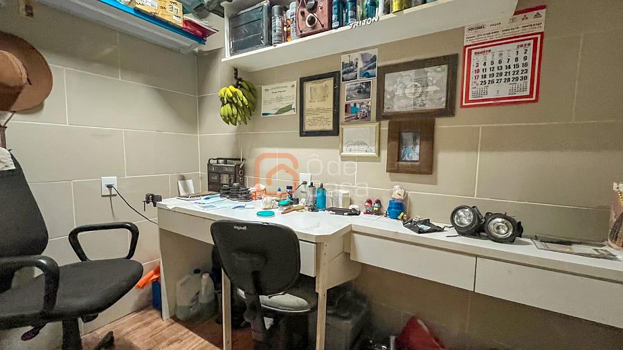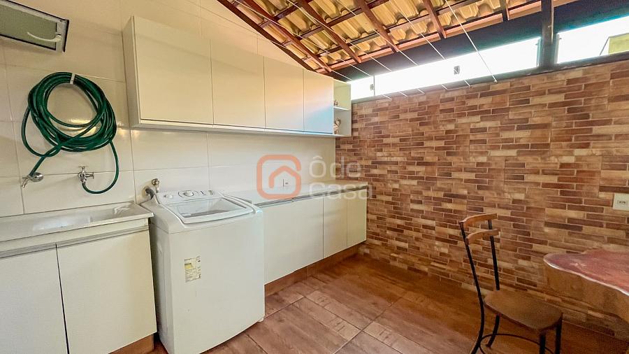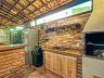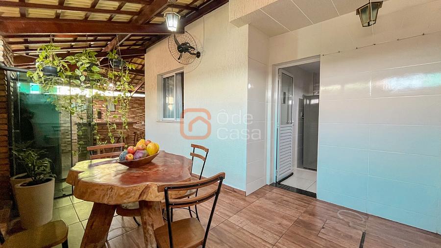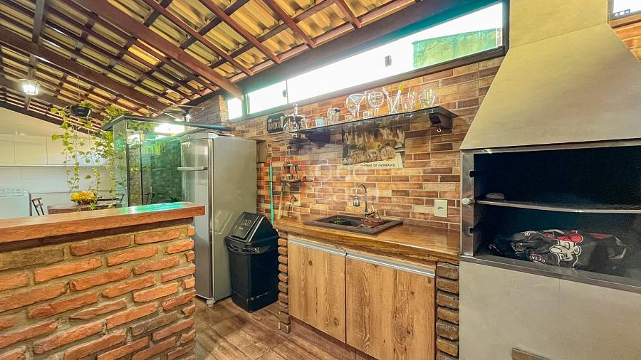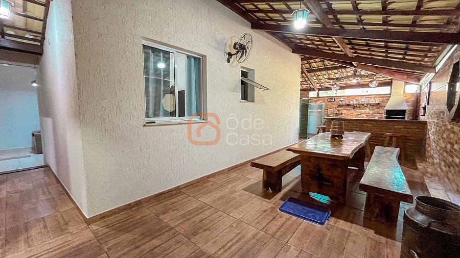 Sala de TV, cozinha com armários, 2 quartos e banheiro social. Parte externa em “U” coberta com área gourmet com churrasqueira e bancada em granito, ducha, banheiro, home office, quarto de despejo e lavanderia independente.