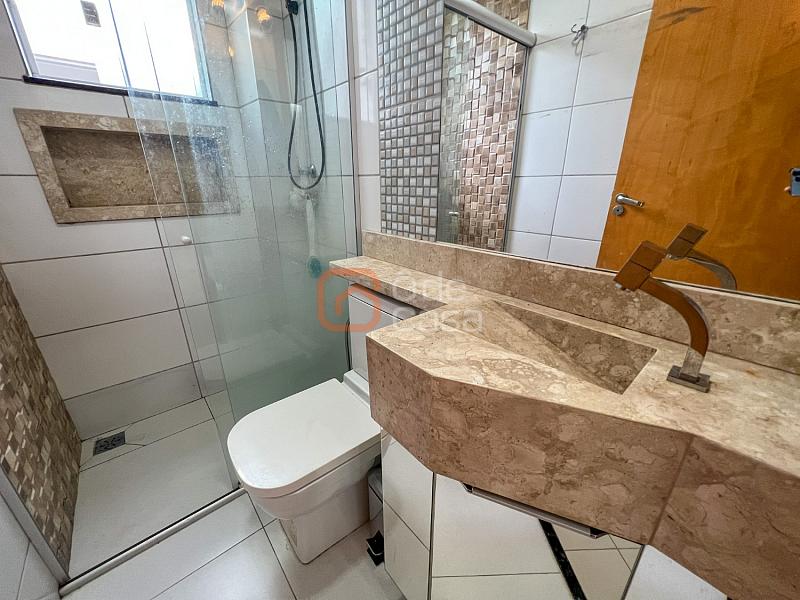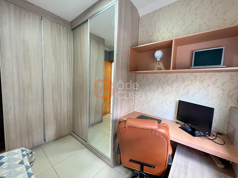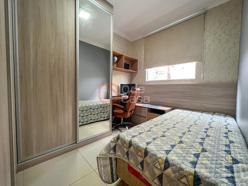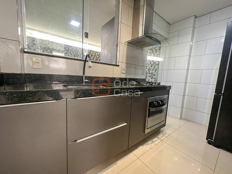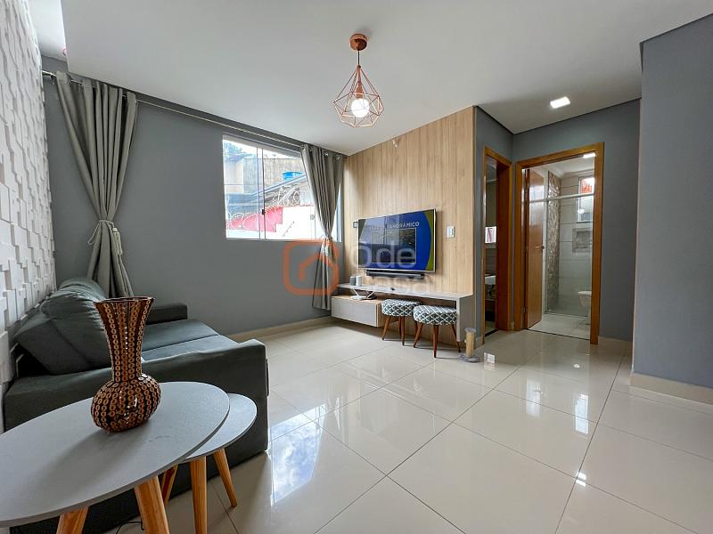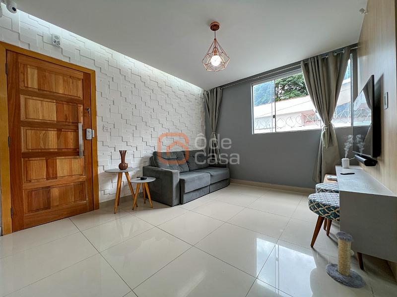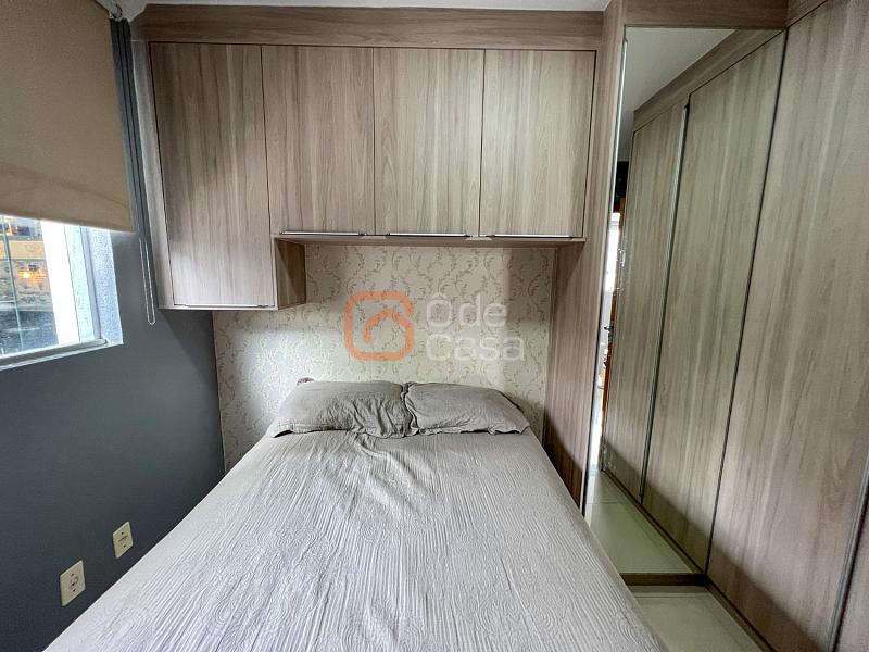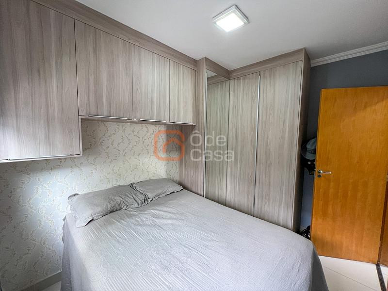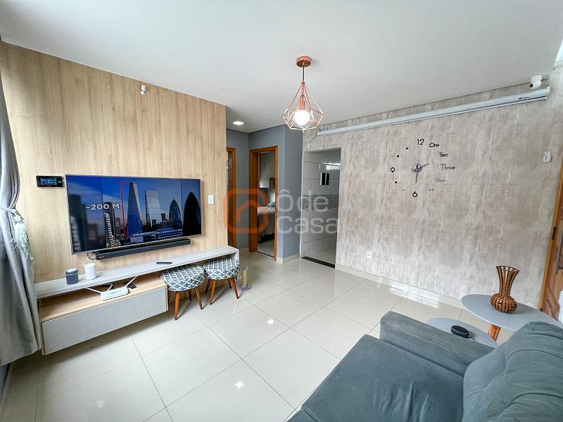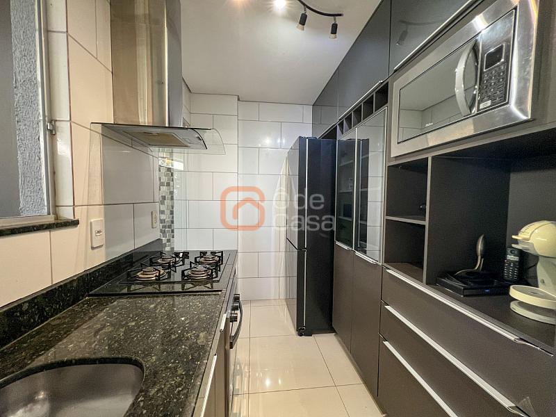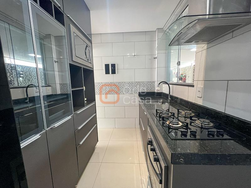 Sala para dois ambientes, cozinha com armários, 2 quartos, banheiro social.