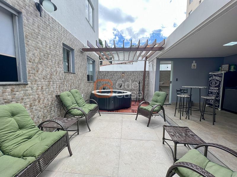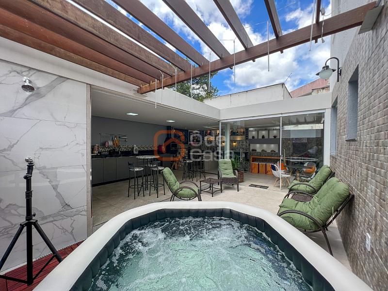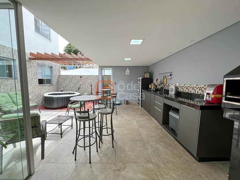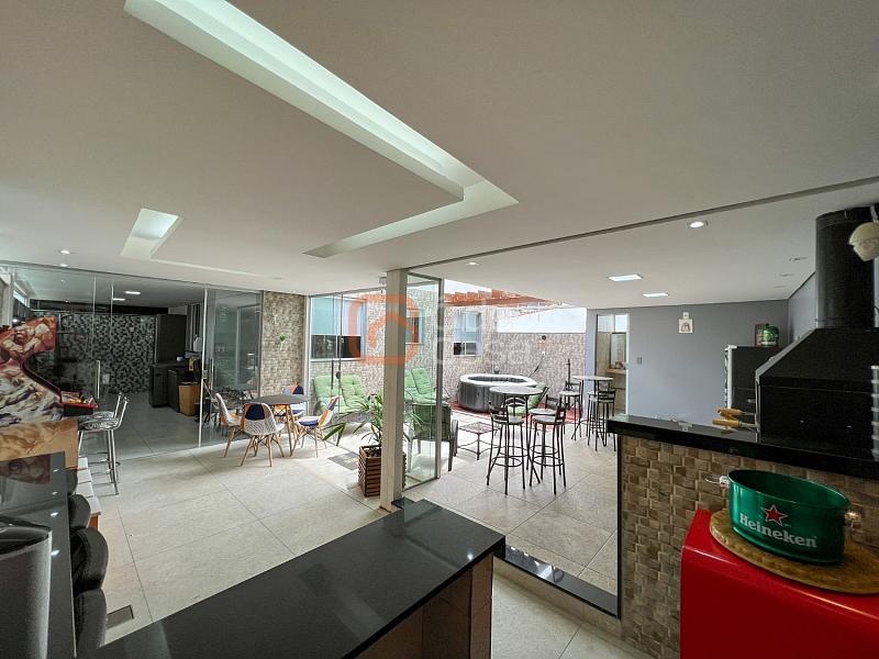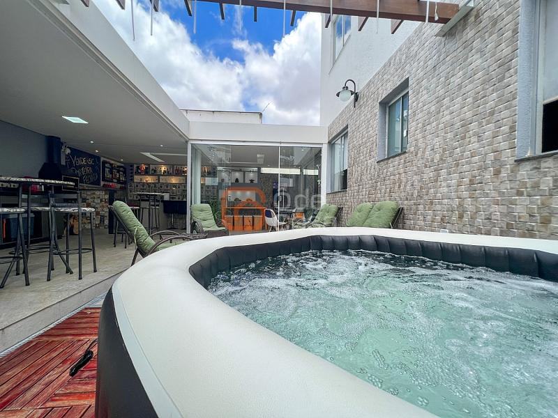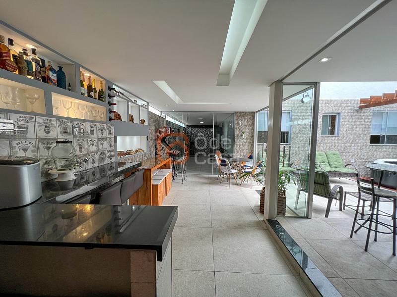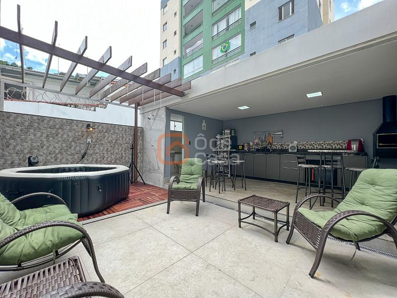Área externa: ampla área privativa coberta com termotelha e fechamento em blindex, espaço gourmet completo com cozinha de apoio, churrasqueira embutida e barzinho, banheiro social. Espaço descoberto com pergolado em madeira, jacuzzi e ducha.
