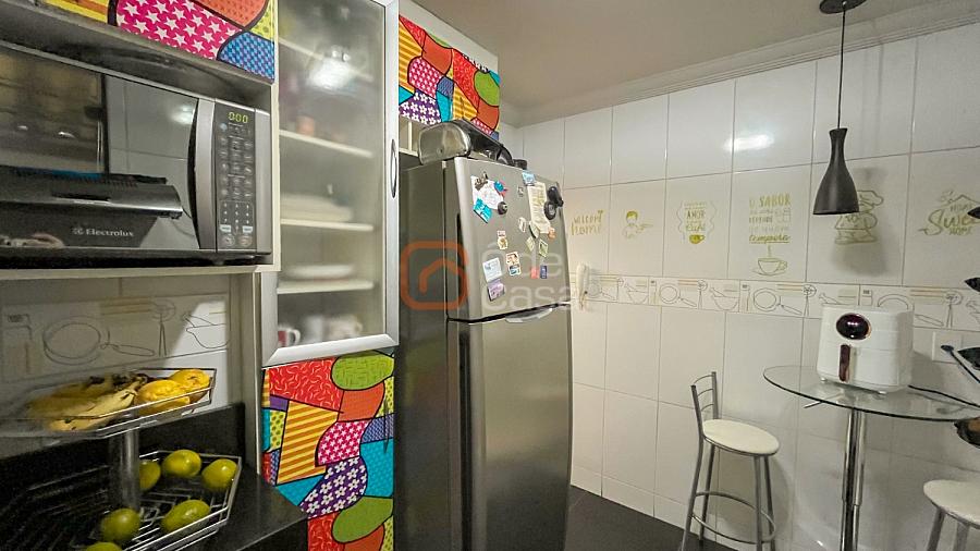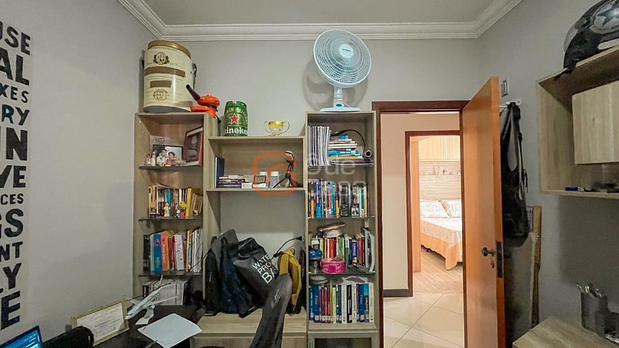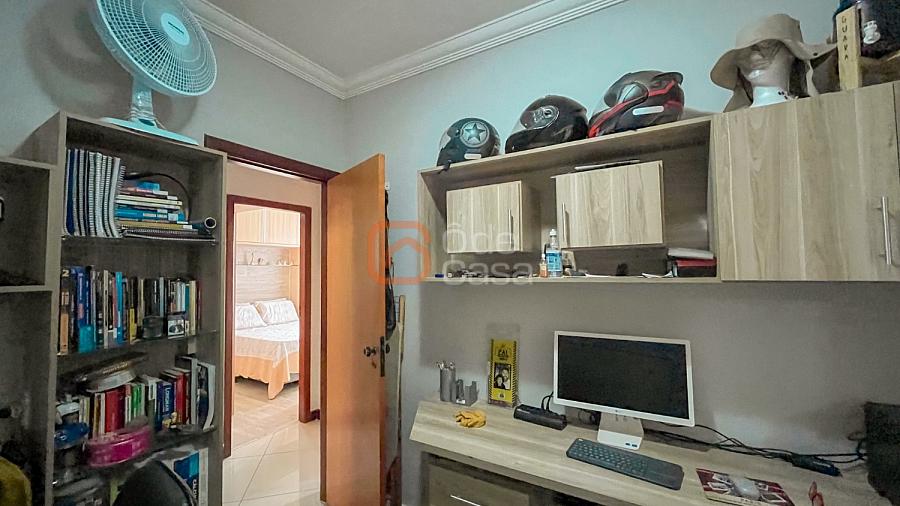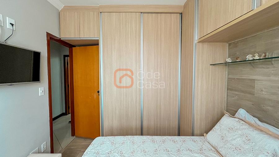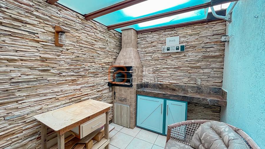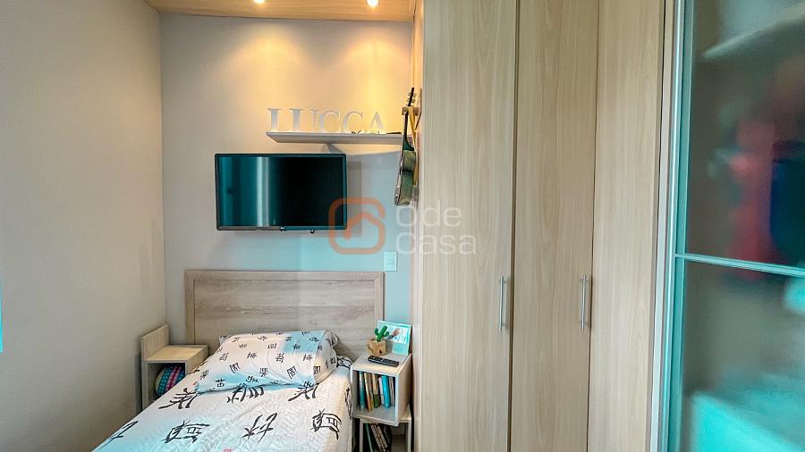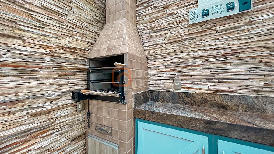 Ampla sala de TV, cozinha com armários, 3 quartos com planejados, sendo 1 suíte, banheiro social e área privativa coberta com espaço gourmet com churrasqueira e área de serviço.