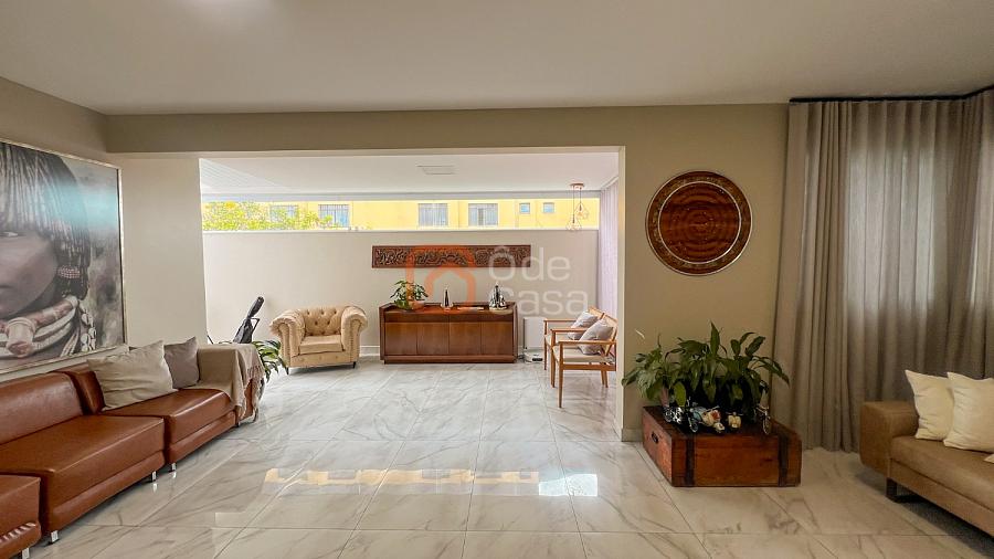 Área privativa do Itapoã, 5 quartos em porcelanato, armários, ar condicionado, closet, sendo 1 com varanda, sala integrada com área privativa, varanda, piso porcelanato, lavabo, cozinha integrada com espaço gourmet todo planejado, forno, cooktop, churrasqueira, porcelanato, fechamento em blindex, área privativa livre e coberta com teto retrátil, lavanderia externa, banho social, porcelanato e box blindex, 2 suítes com closet e varanda, 2 semi suítes, 6 vagas sob pilotis.