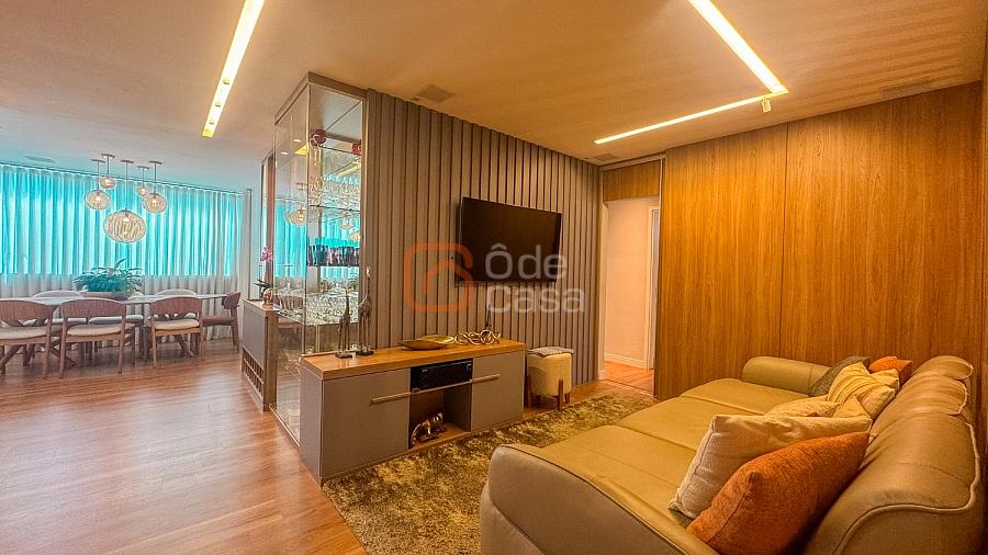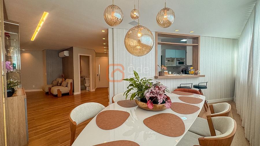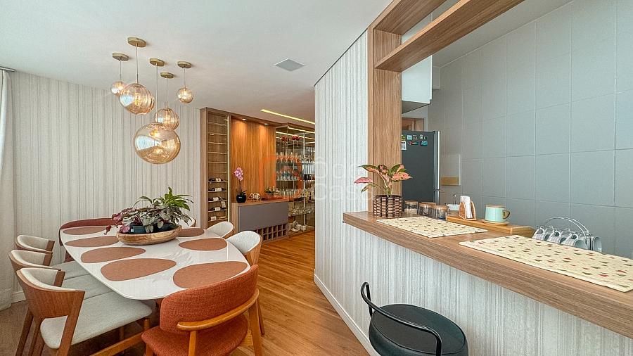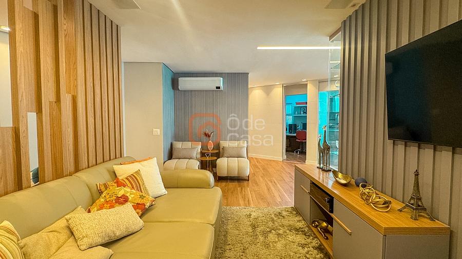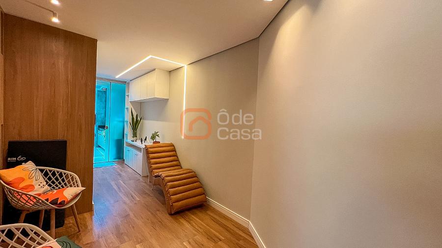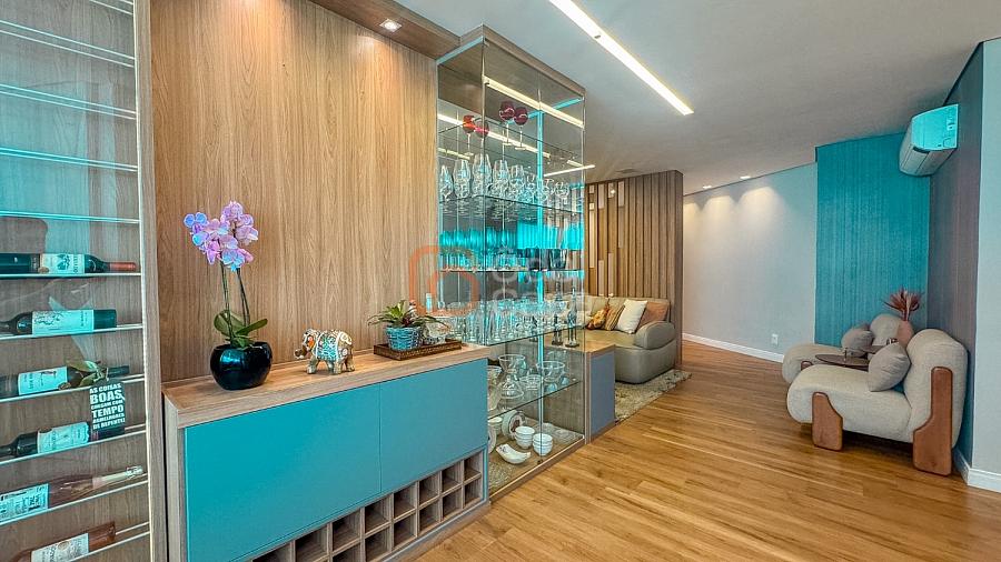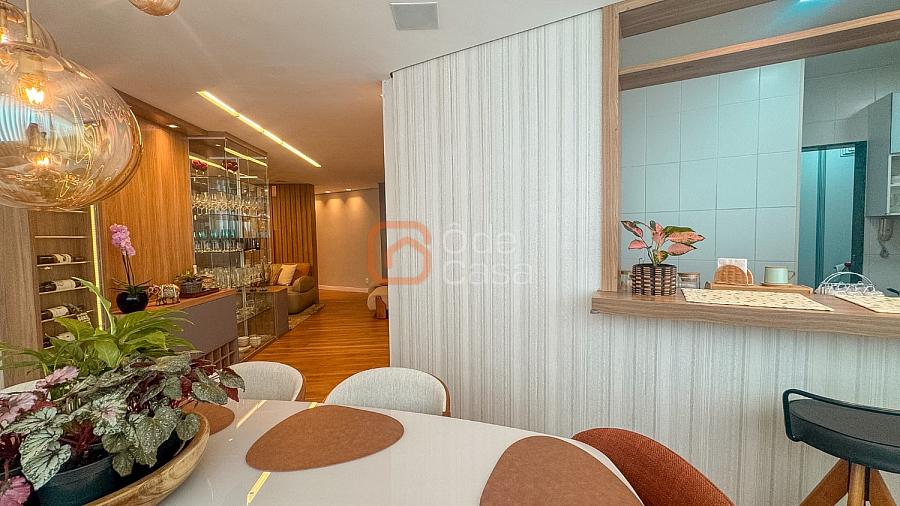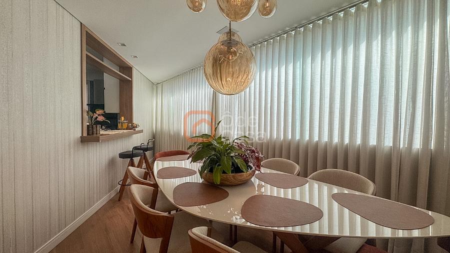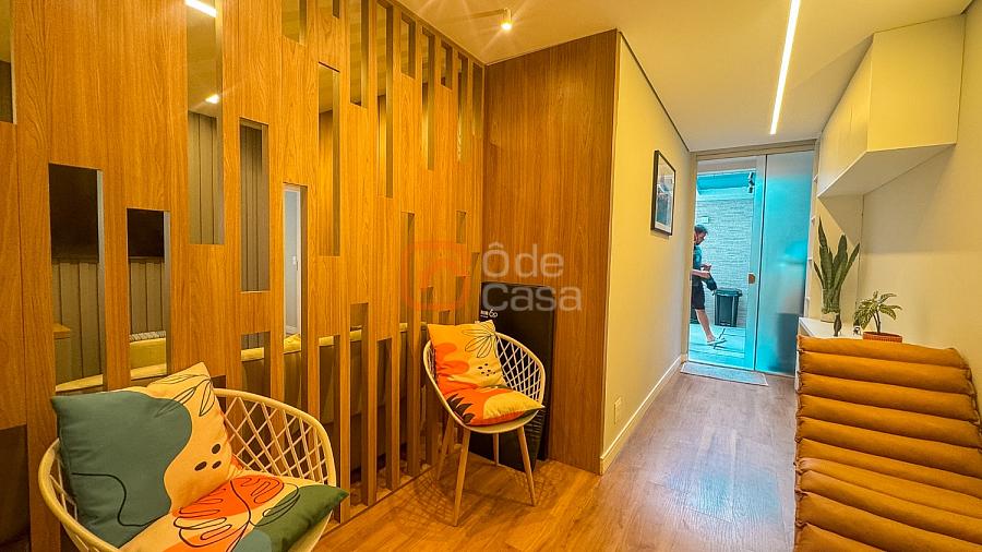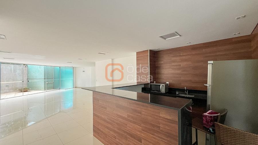 Composta por sala de TV com sonorização embutida, ar-condicionado de 22mil BTUs, sala de jantar com linda vista, e sala de estar, cozinha com armário, fogão embutido com forno, além do forno convencional, coifa, despensa, área de serviço independente.
