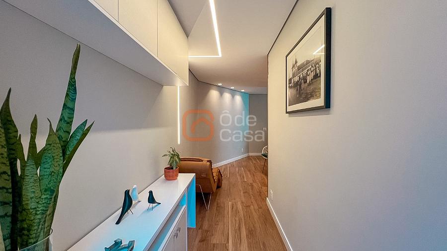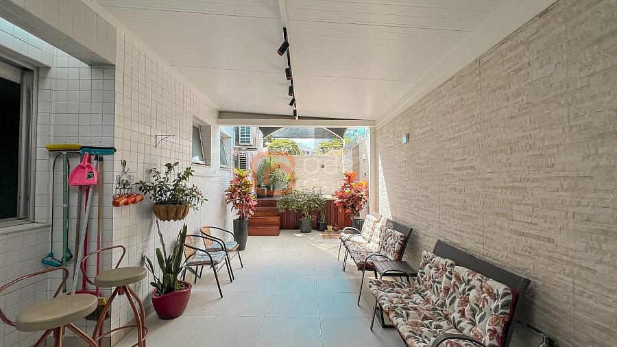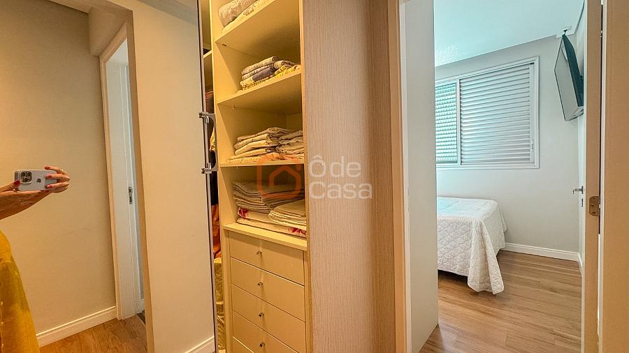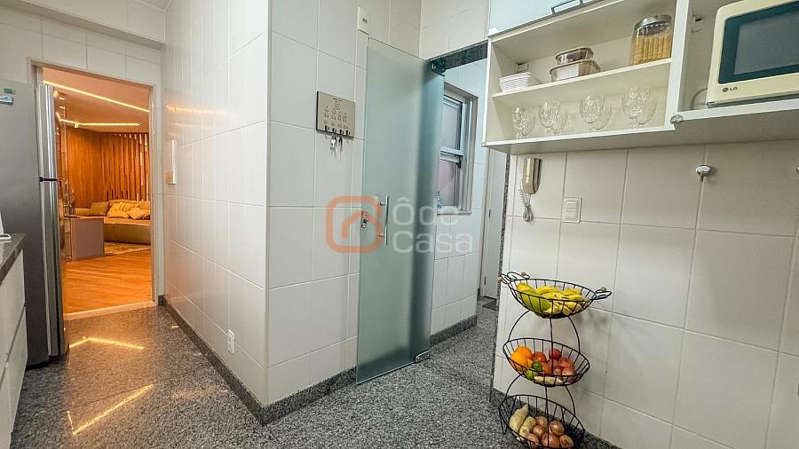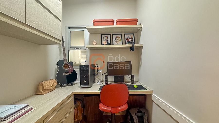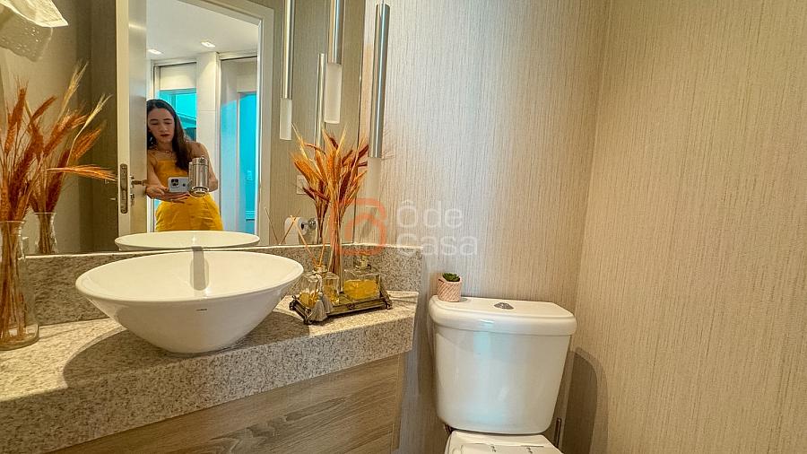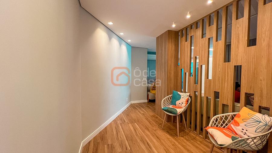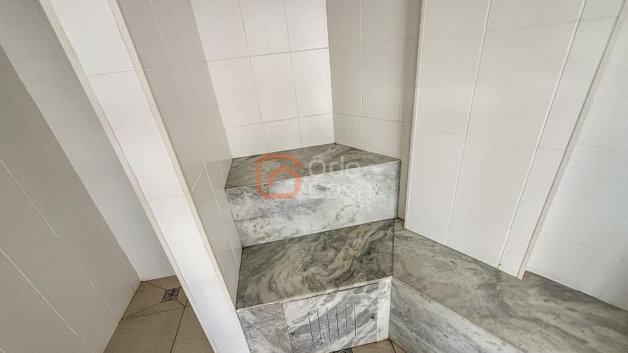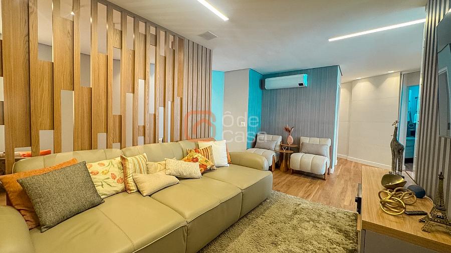 Composta por sala de TV com sonorização embutida, ar-condicionado de 22mil BTUs, sala de jantar com linda vista, e sala de estar, cozinha com armário, fogão embutido com forno, além do forno convencional, coifa, despensa, área de serviço independente.