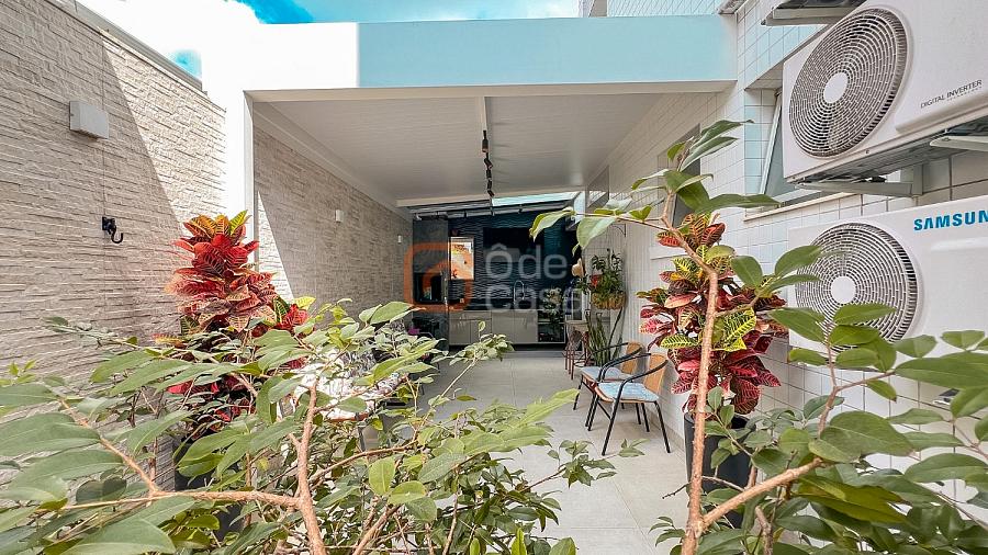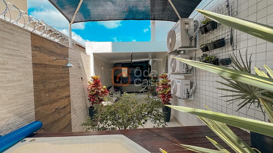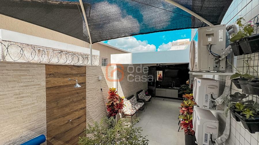 Parte íntima com 3 quartos, sendo 1 suíte com ar-condicionado e projetor de 100 polegadas com sonorização, além de um dos quartos com closet e ar-condicionado, e banheiro social.