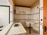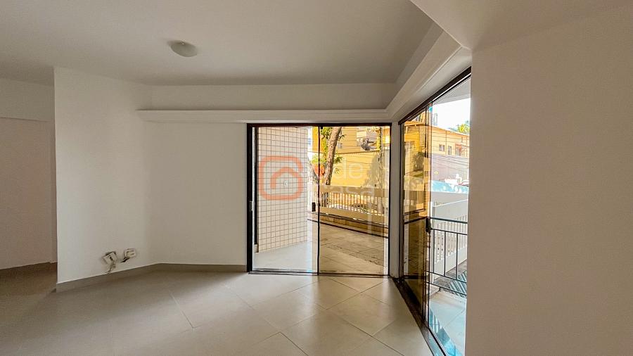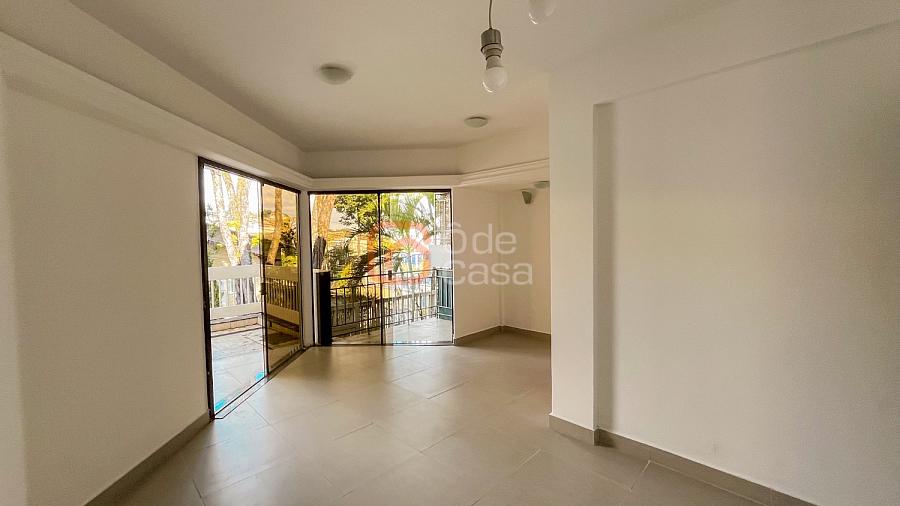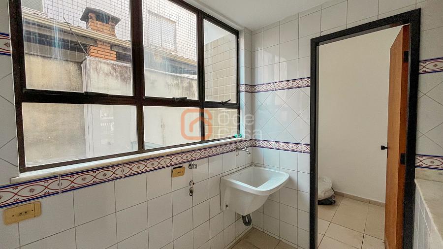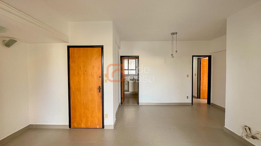 Ampla sala para 2 ambientes com varanda e saída para a área privativa, cozinha com armários, área de serviço, lavabo e despensa, 3 quartos com armários, sendo 1 suíte, e banheiro social.