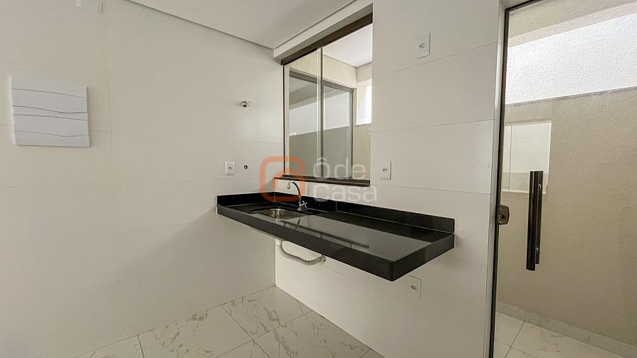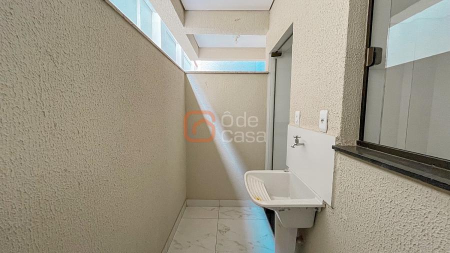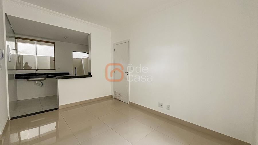 Sala para dois ambientes, cozinha americana, 2 quartos, sendo 1 suíte, banheiro social, 2 área externas, sendo área de serviço coberta com acesso pela cozinha e outra descoberta com acesso pela sala.