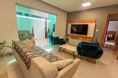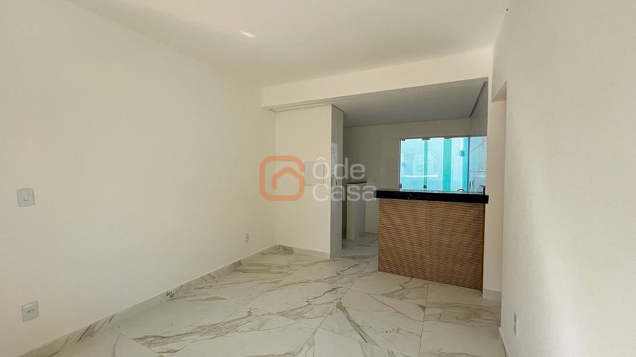 Ampla sala para 2 ambientes, cozinha americana com bancada,  área de serviço integrada com a cozinha, 2 quartos, sendo 1 suíte e banheiro social.