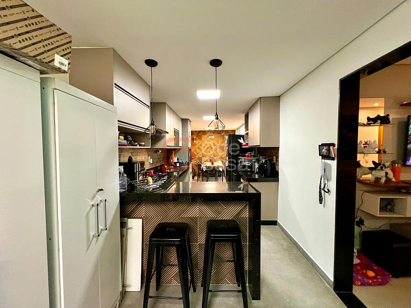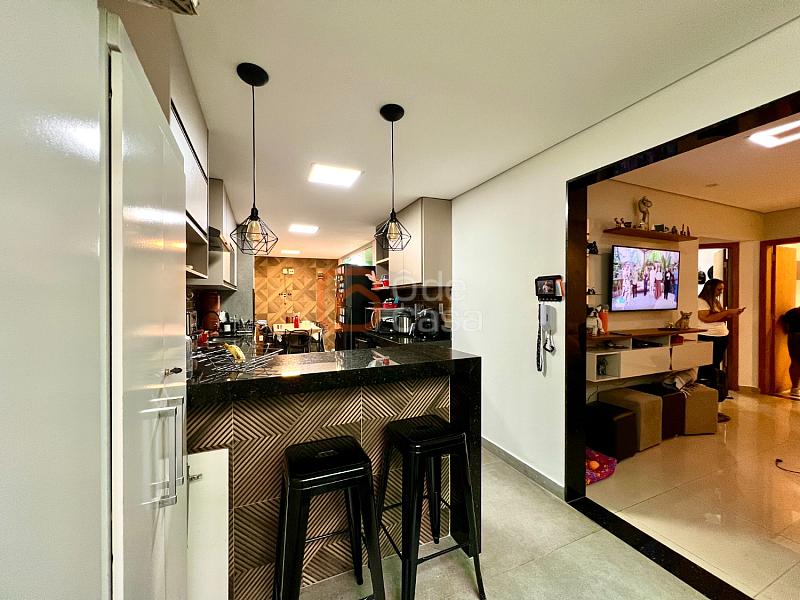 O imóvel conta com sala de estar, 3 quartos sendo 1 suíte, banheiro social, armários planejados nos quartos e na cozinha, além de acabamento em porcelanato e granito.