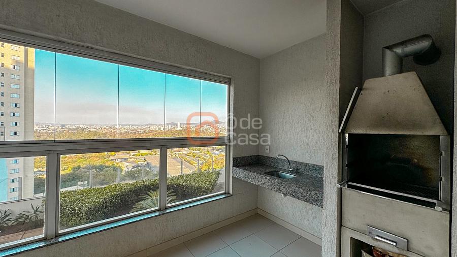 Sala para dois ambientes, varanda gourmet com churrasqueira integrada com a sala, vista panorâmica, cozinha americana com armários, área de serviço independente, DCE, 4 quartos com armários, sendo 2 suíte e banheiro social.