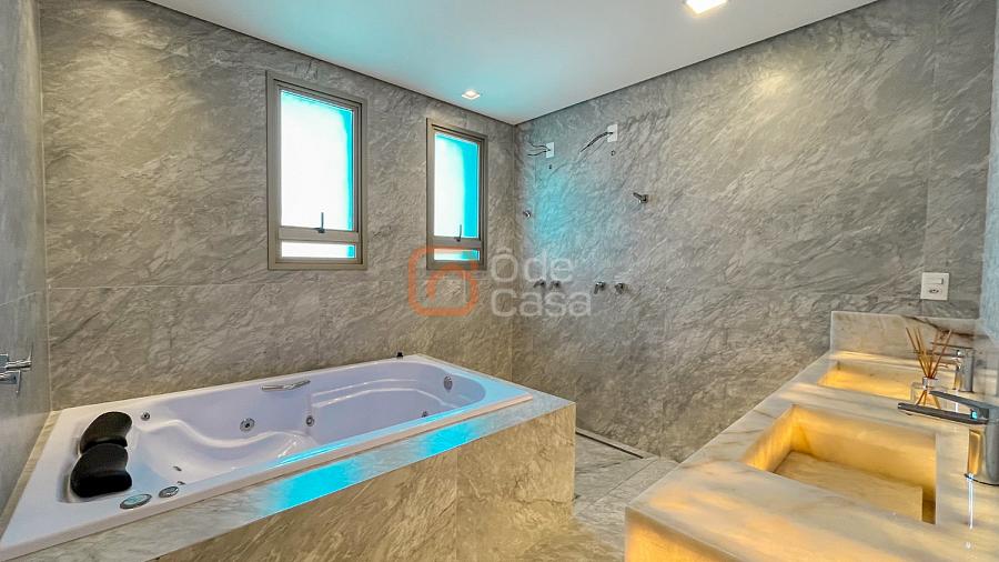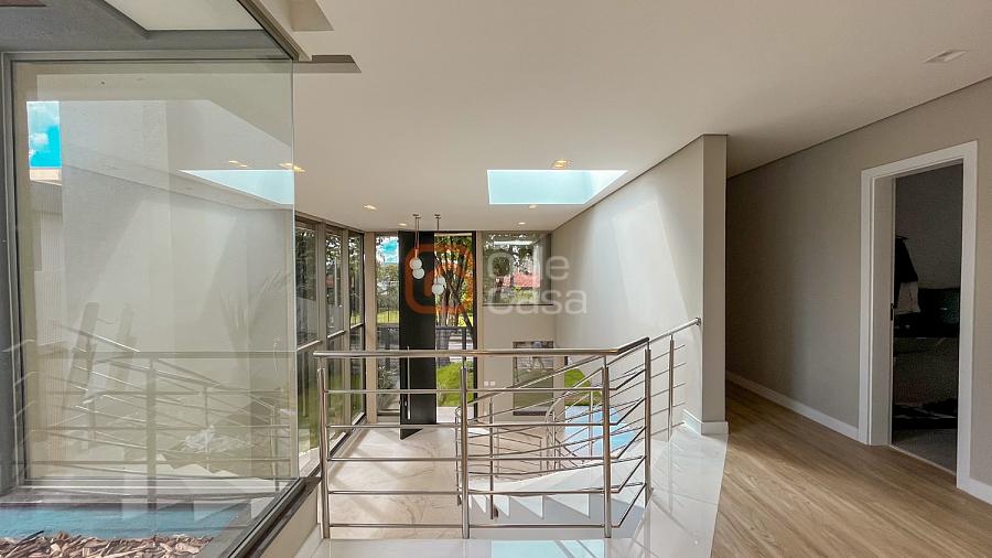 2° Pavimento: 4 suítes com venezianas automatizadas. Suíte máster com closet, hidromassagem e varanda privativa. Copa para maior comodidade e hall com jardim de inverno.