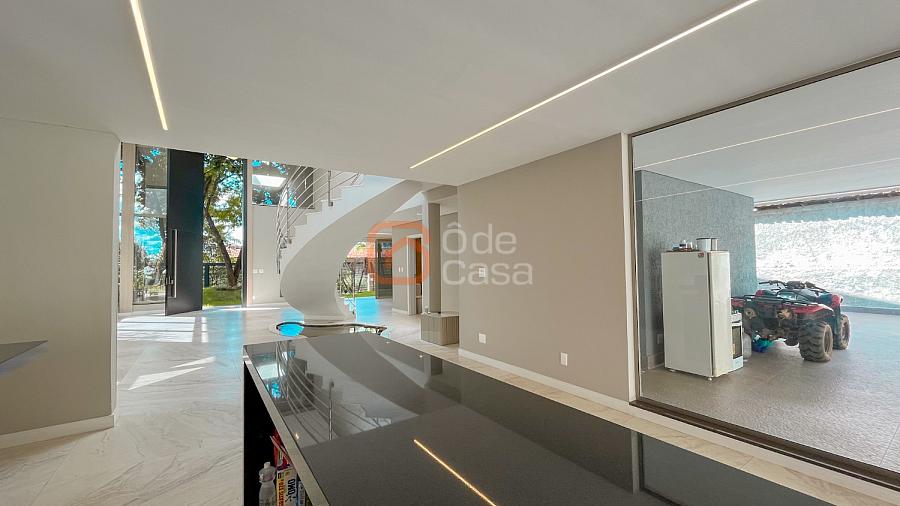 8 vagas de garagem. Casa com paisagismo, projeto luminotécnico e aquecimento solar. Além de, preparação para receber elevador.