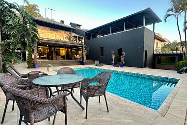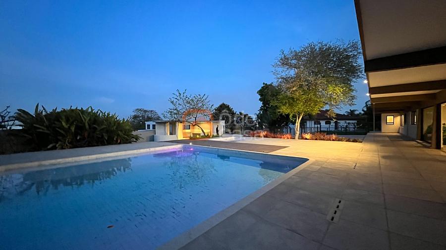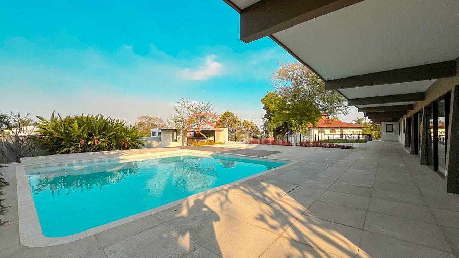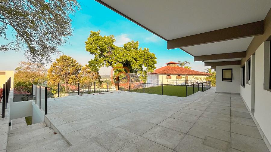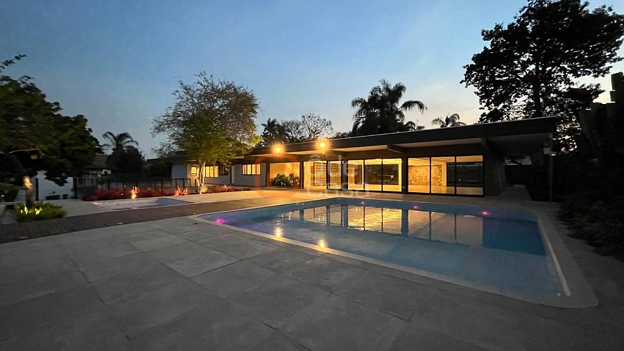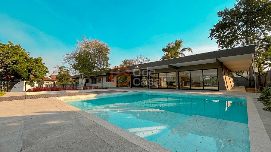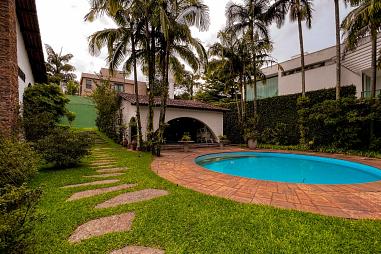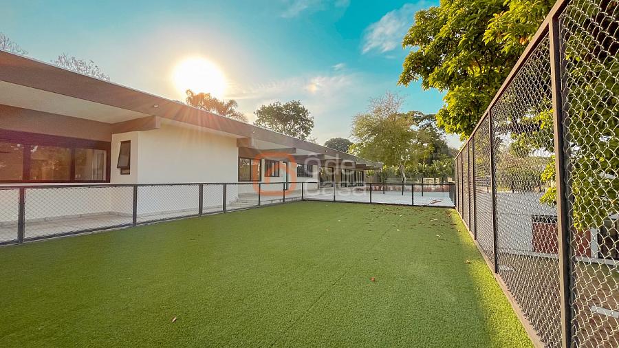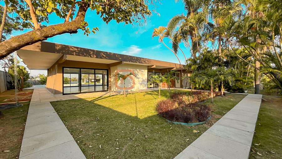 2º Pavimento (1 nível abaixo da rua): Área gramada arborizada com iluminação cênica, quarto de despejo, anexo independente com dois quartos, cozinha e lavabo, além de garagem para até 14 veículos.