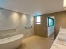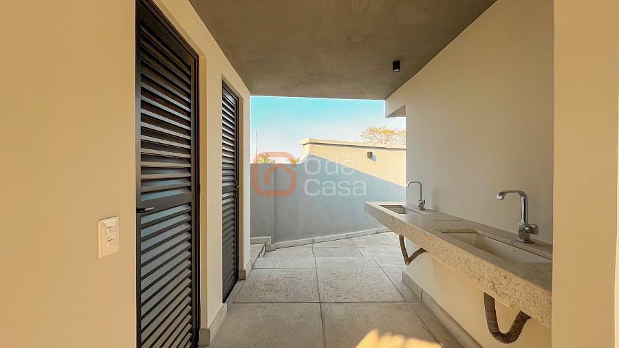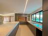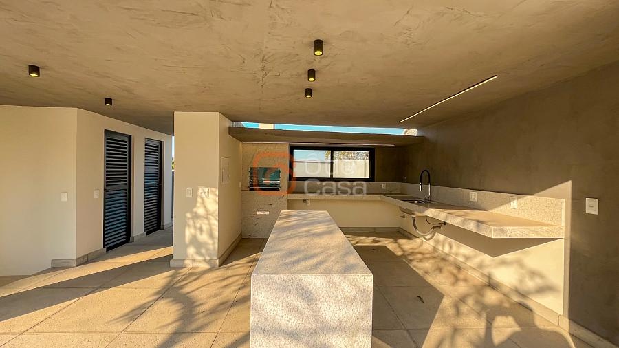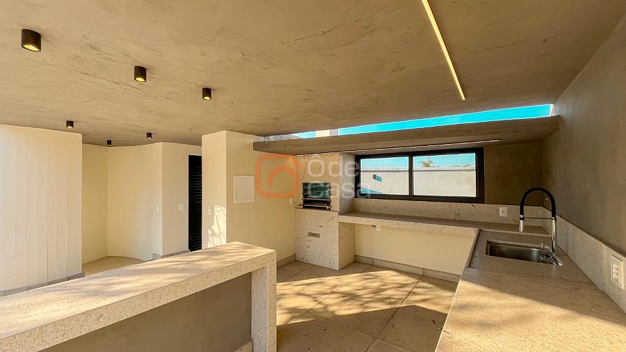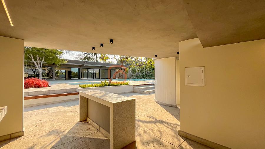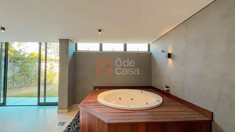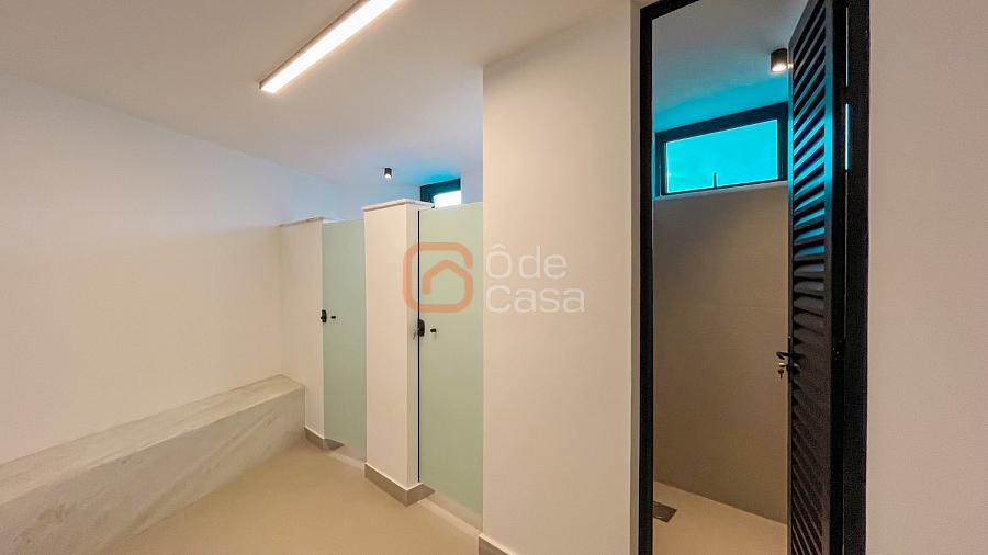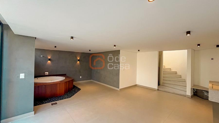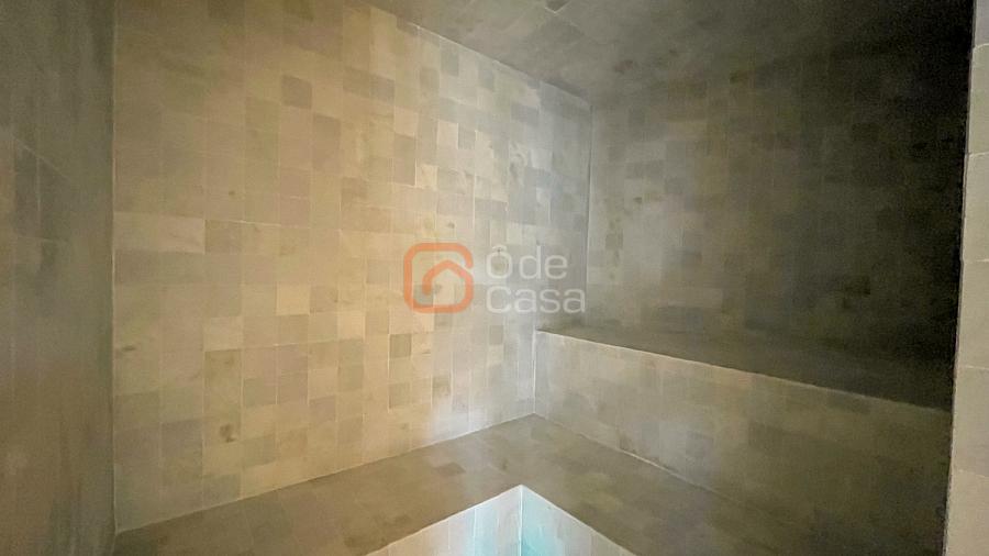 Área gourmet: Piscina, hidromassagem ao ar livre, churrasqueira e além de 2 banheiros de apoio. No piso inferior, conta com hidromassagem coberta com deck em madeira, sauna sofisticada, vestiário revestido em mármore e ducha.