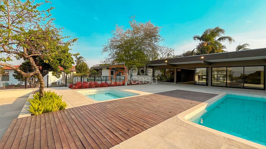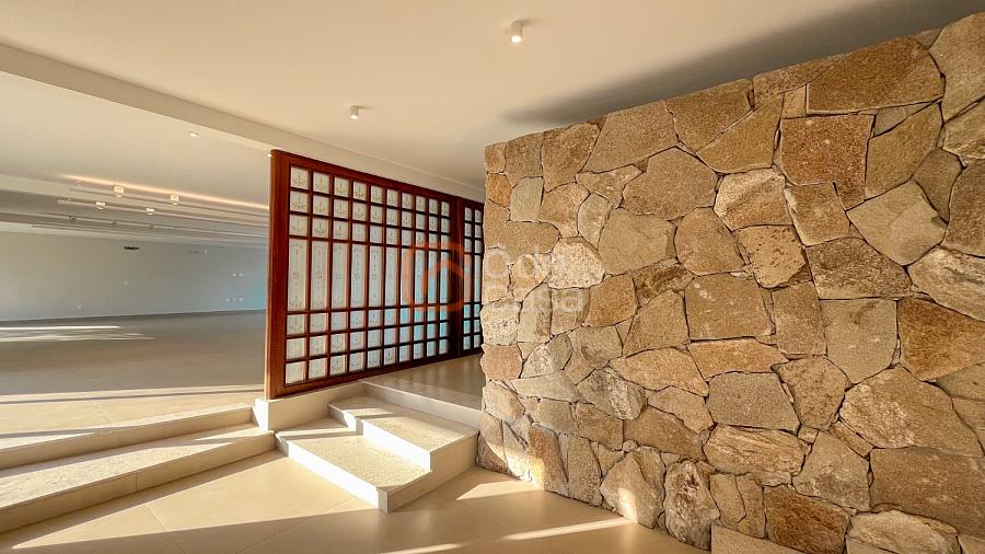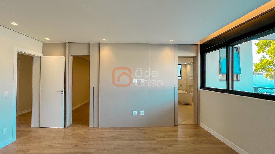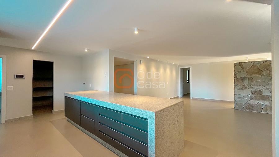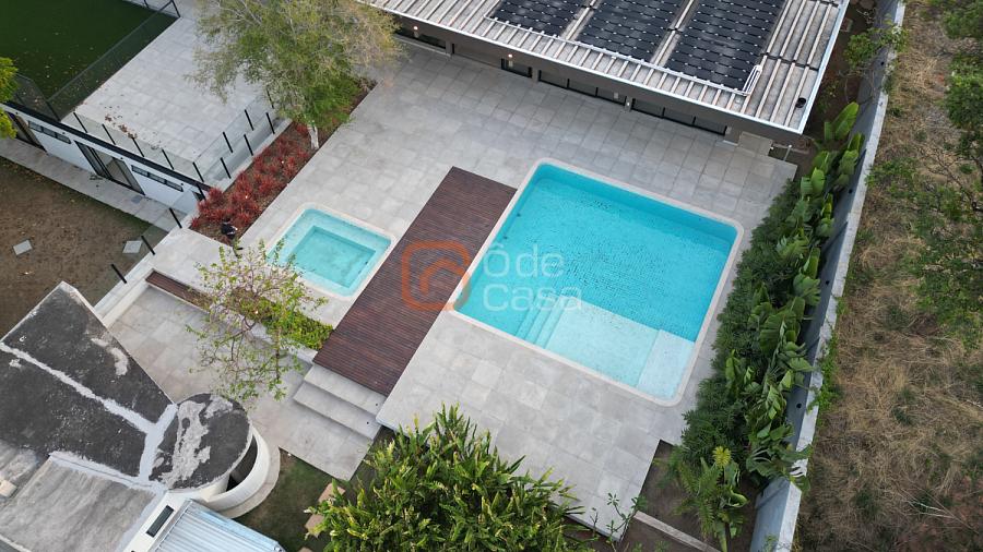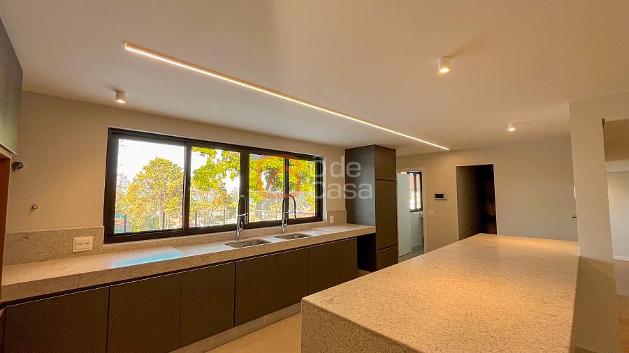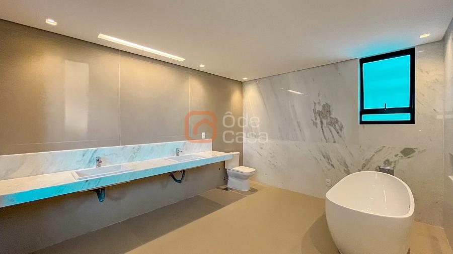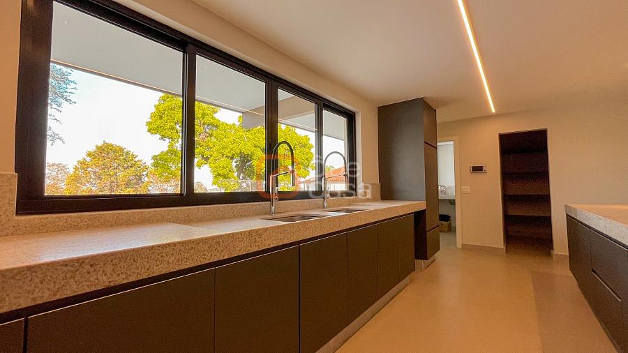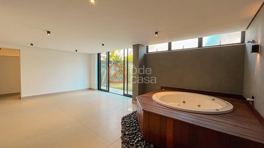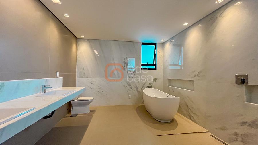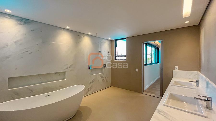 1º Pavimento (nível da rua): Ampla sala para 4 ambientes confortáveis, sala íntima de TV, copa com espaço com cristaleira, lavabo de apoio, cozinha estilo americana com bancadas em granito e armários planejados e despensa e área de serviços de apoio. Parta íntima com 4 quartos, todos suítes, sendo 3 deles com espaço para closet e suíte master com banheira de hidromassagem.